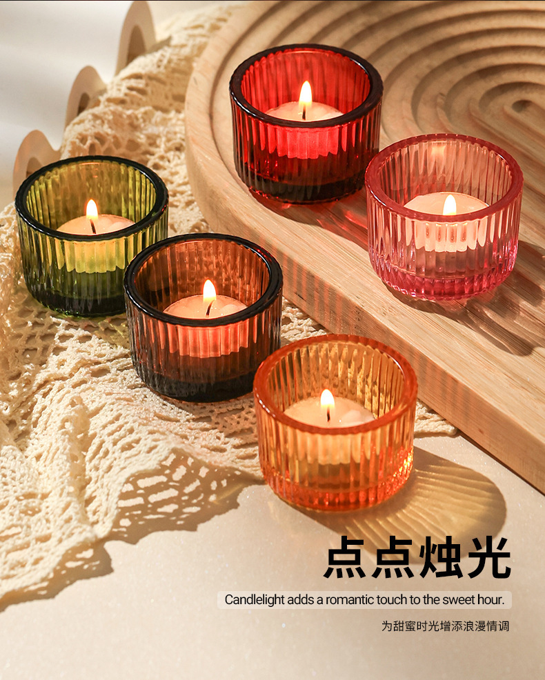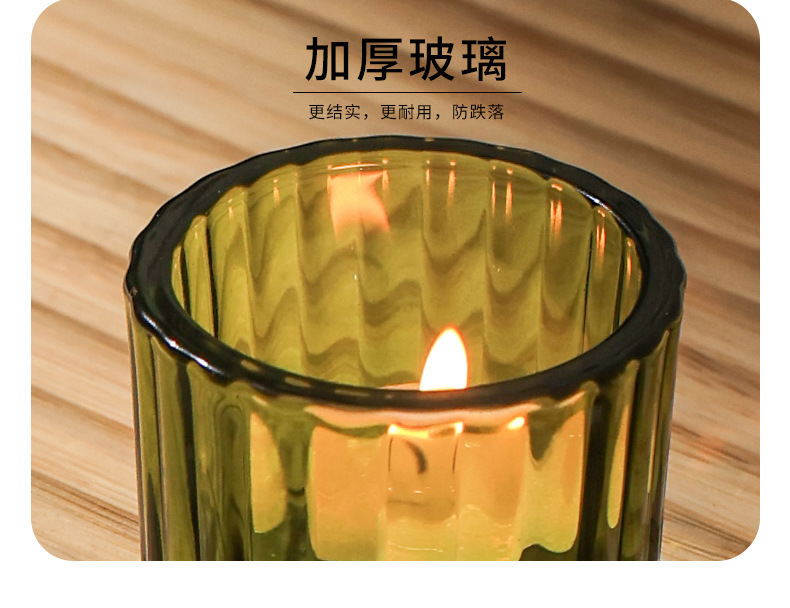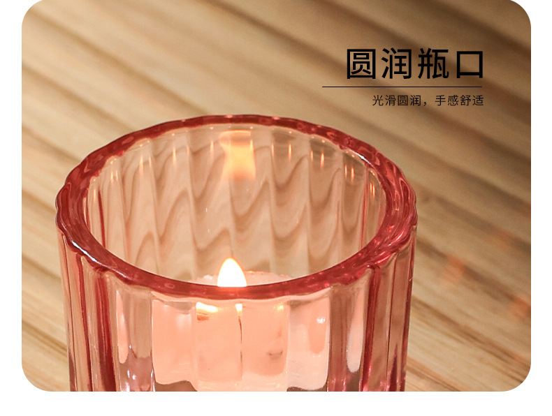 竖纹蜡烛杯厚壁香薰北欧浪漫烛光晚餐家用玻璃瓶蜡烛台家居装饰