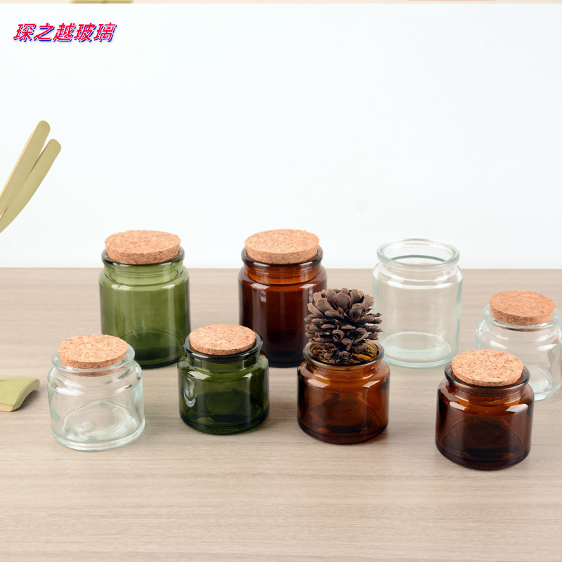 レトロな茶色のガラスのろうそくの杯のアロマカップの空の瓶の木の栓の透明な燭台の杯のDIYの空の杯のお土産の置物