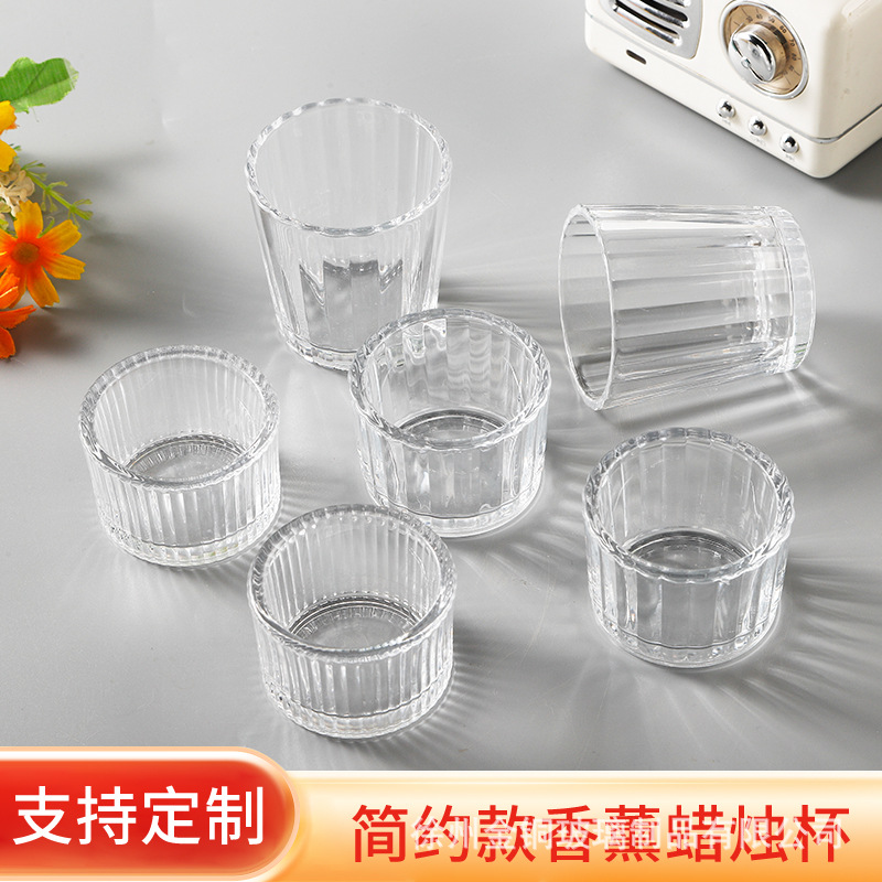 クリエイティブ縦縞diyアロマキャンドルカップ耐高温透明ガラスキャンドル台光影カップ燭台瓶空カップ