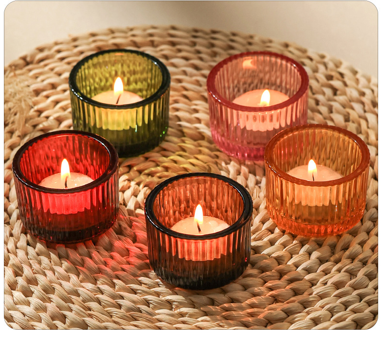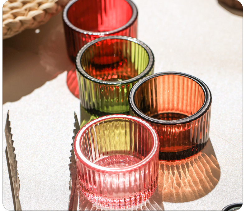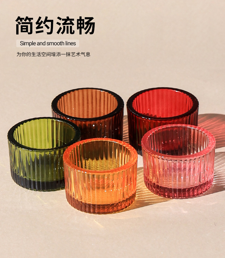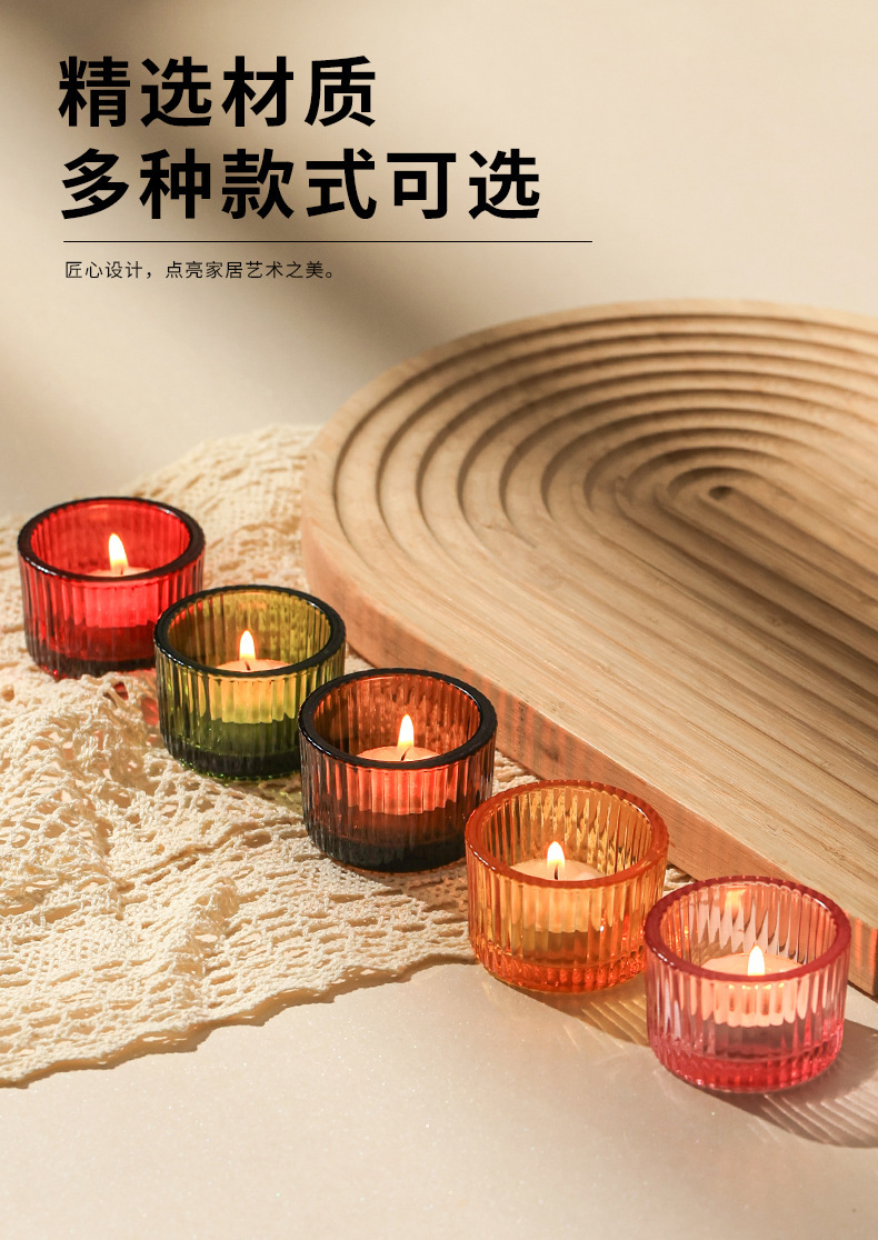 竖纹彩色厚壁蜡烛杯北欧浪漫烛光晚餐家用蜡烛台民宿家居装饰批发