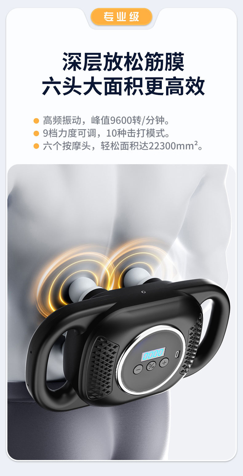 VTT筋膜枪肌肉放松多档16头热敷振动液晶按摩器多档调节按摩仪