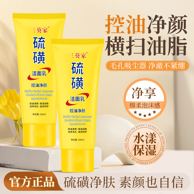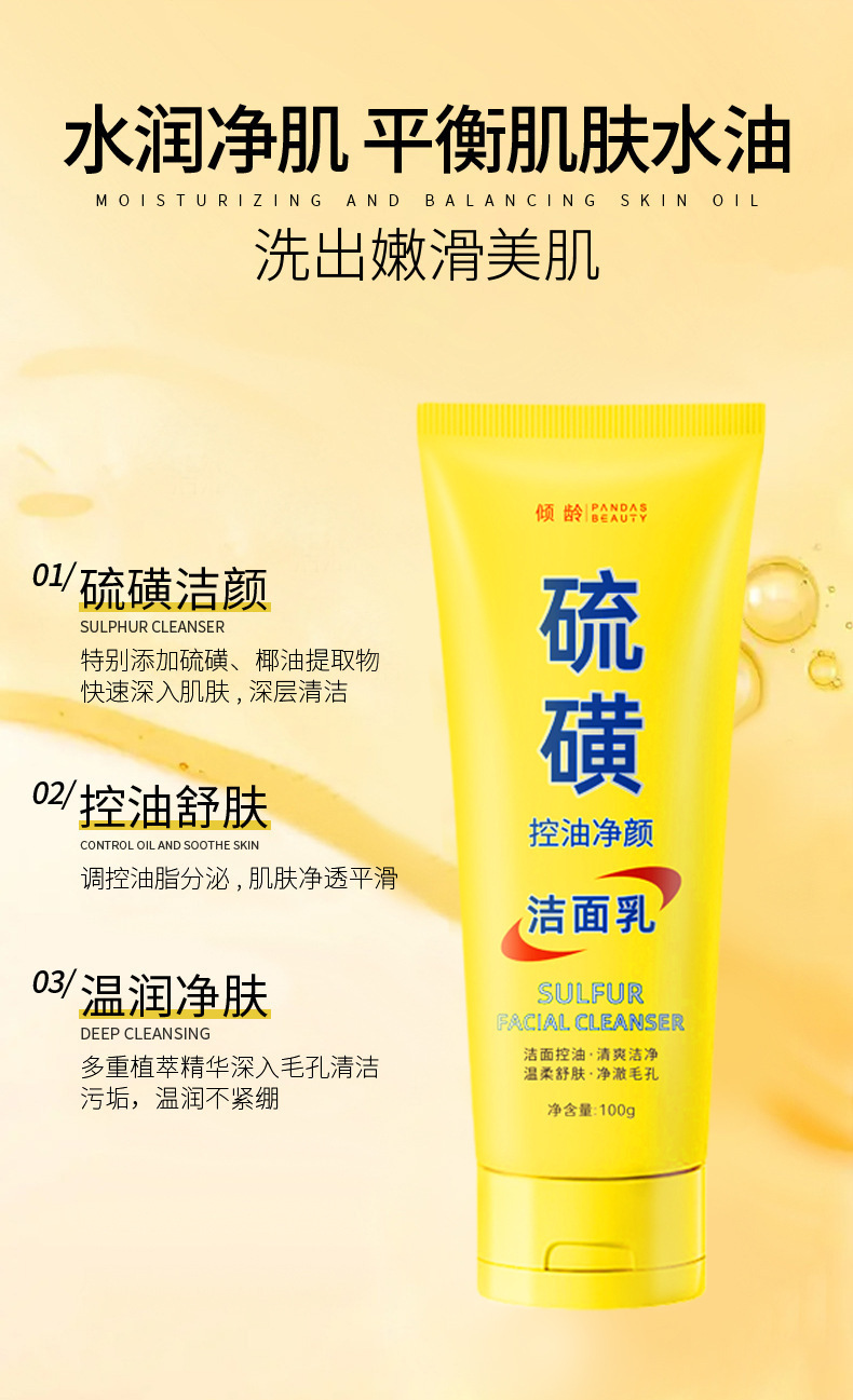 硫磺控油洗面奶深层清洁提亮肤色清爽净颜温柔舒肤净澈毛孔洁面乳