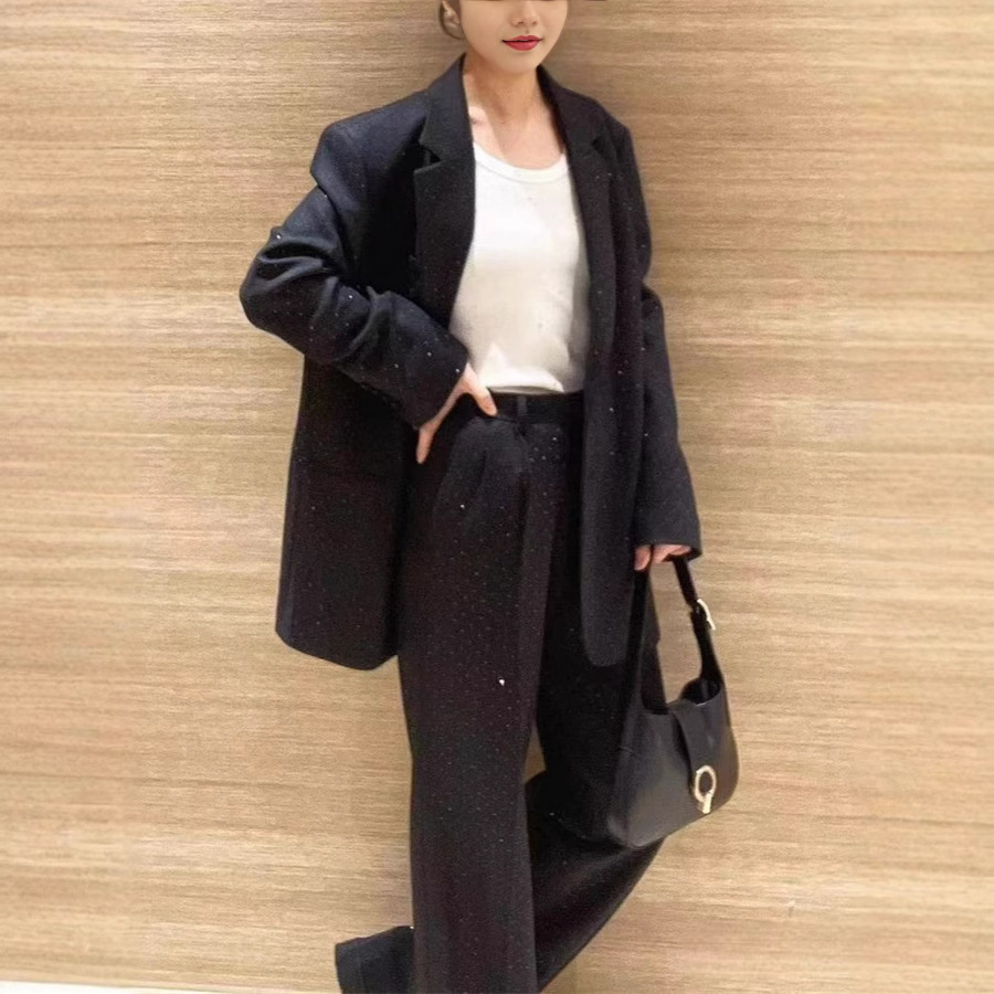 法式小众 2025早秋通勤正装暗条纹烫钻马甲裤裙套装