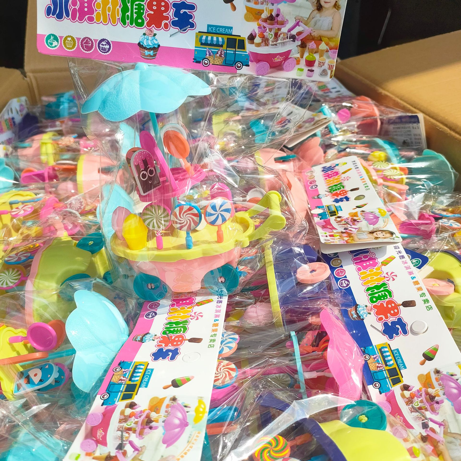 ままごとのおもちゃのミニアイスクリームのキャンディー車のカートセットの女の子のシミュレーションの手押し車の女の子の贈り物の卸売り