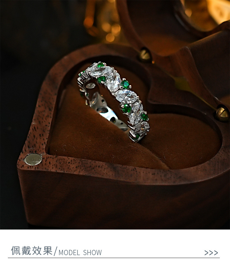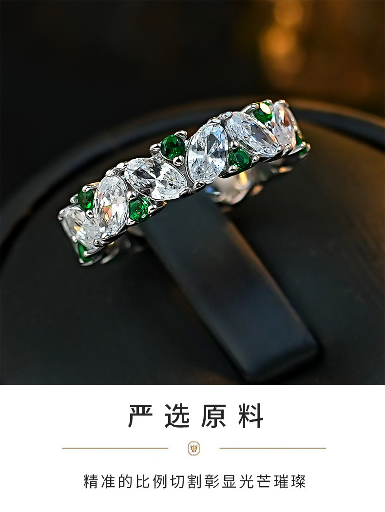 オズの魔法使い!シルバー925 エメラルドカラーダイヤモンドリング 人差し指 マーキス型高炭素ダイヤモンド 気質 軽い 高級感 ニッチ