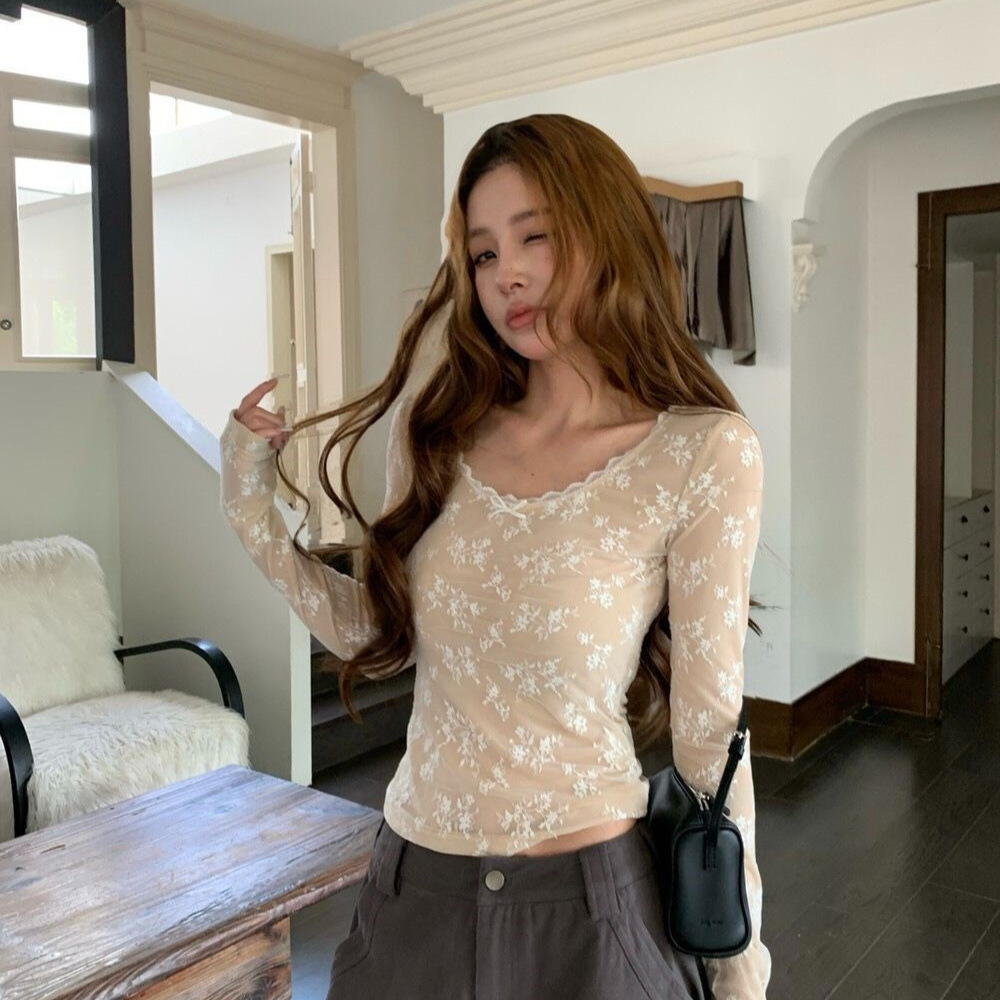 2025秋冬季新款温柔纯欲风打底衫蕾丝花边蝴蝶结长袖T恤修身上衣