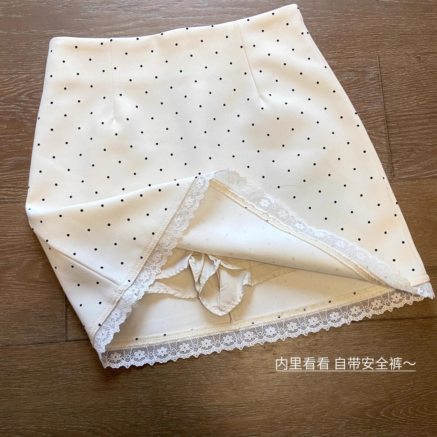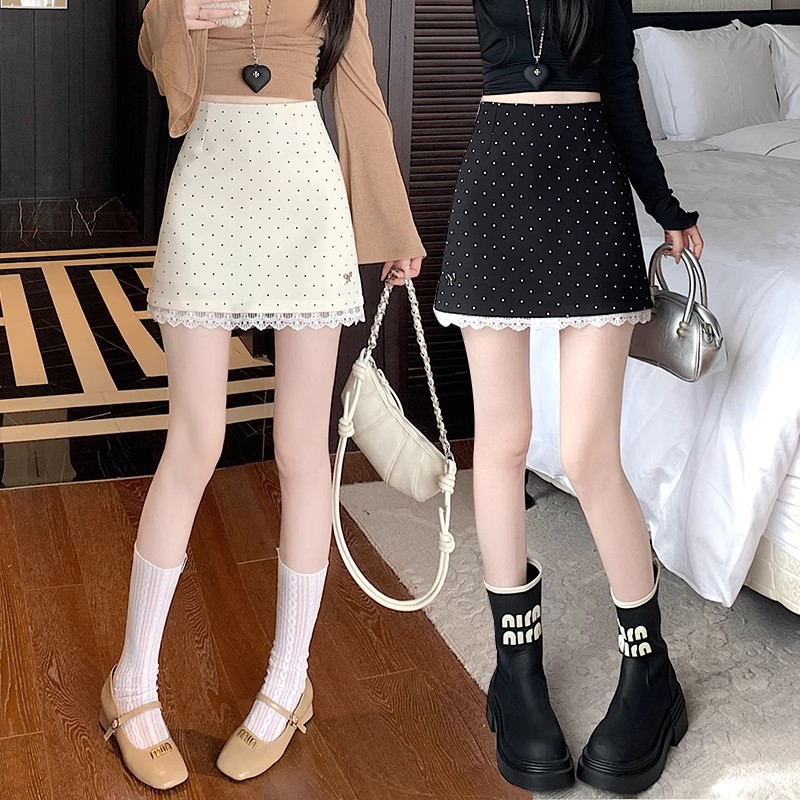 蕾丝拼接波点半身裙女春夏新款防走光高腰显瘦包臀裙百搭A字裙子