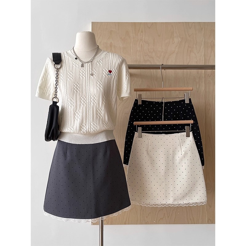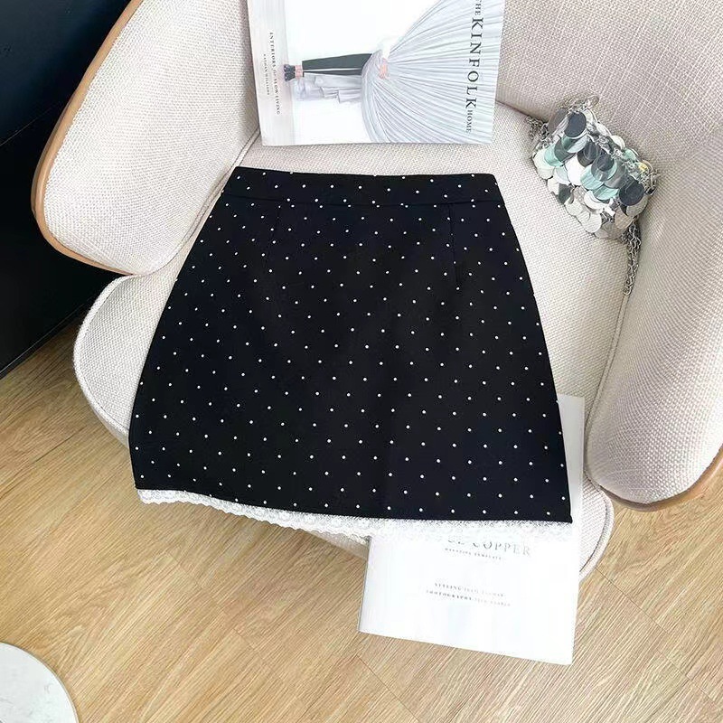 蕾丝边拼接波点半身裙女夏季设计感百搭气质流行高腰字包臀短裙