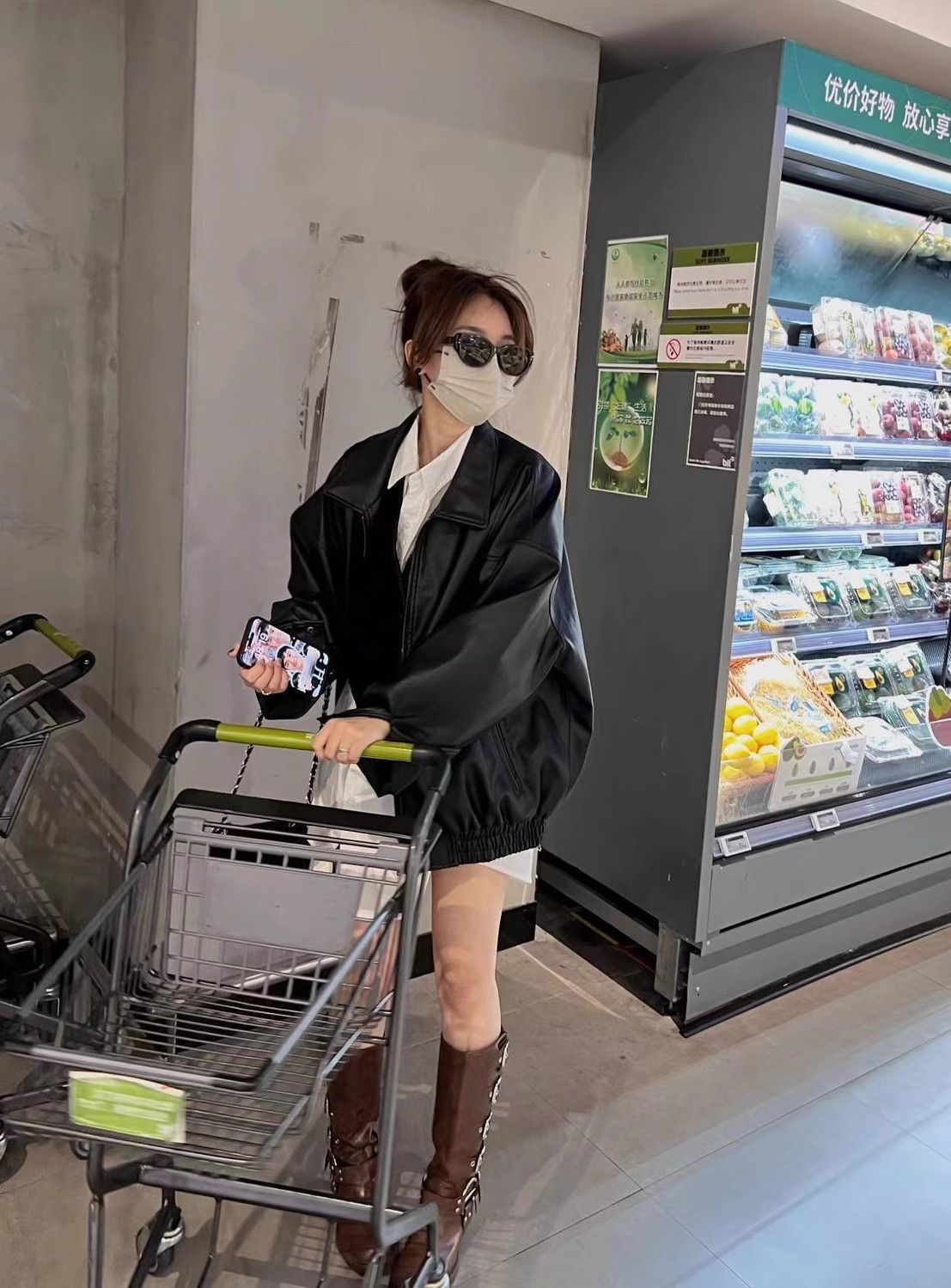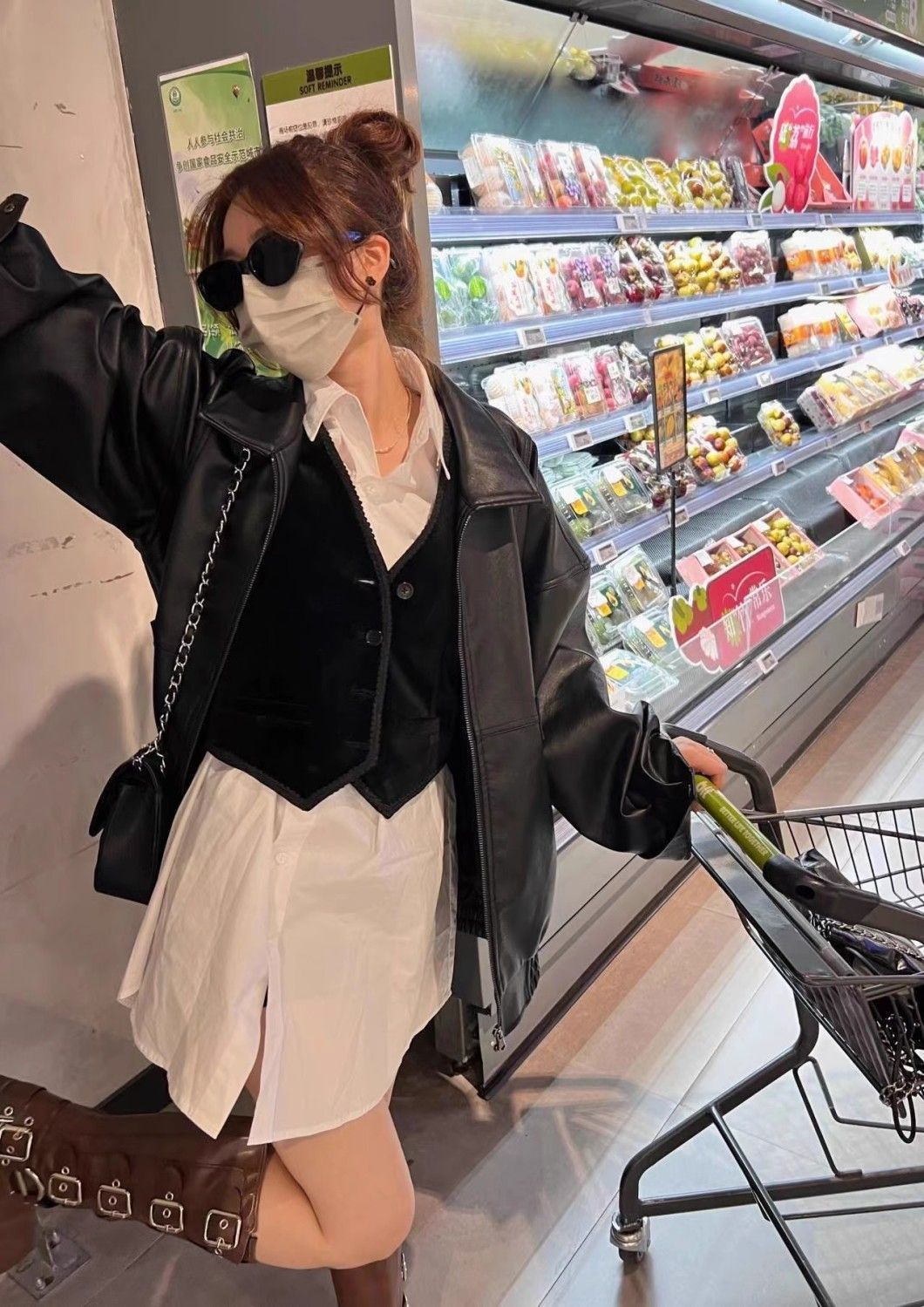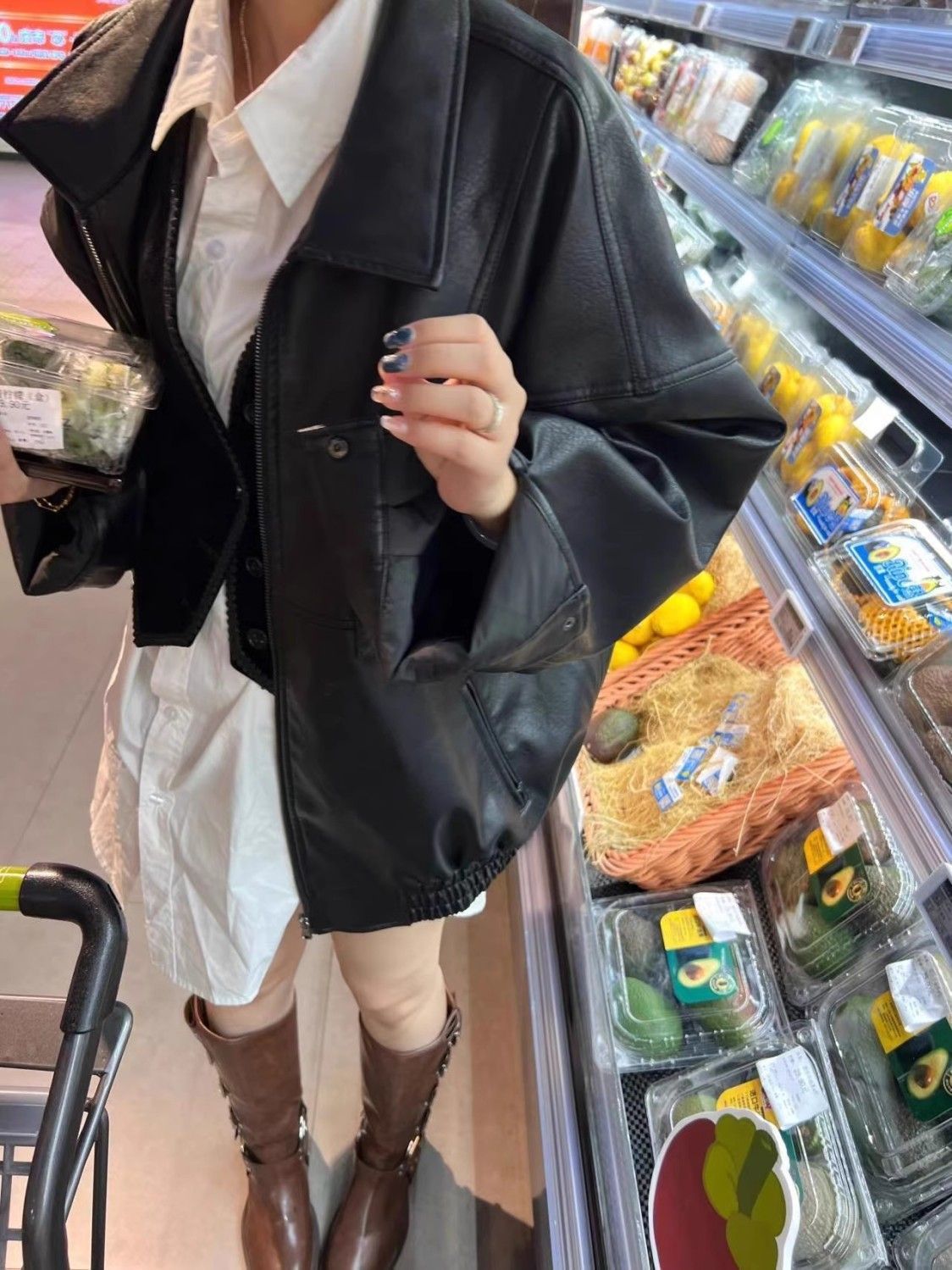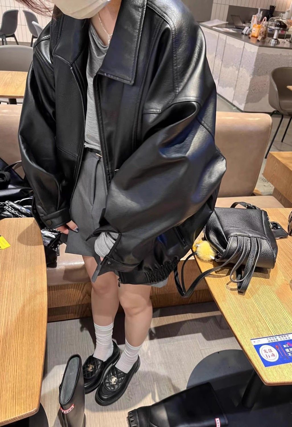 HAVERICEレストラン経典入門モデルの甘い女の子の秋のシンプルなソフトジャケットレザーコート