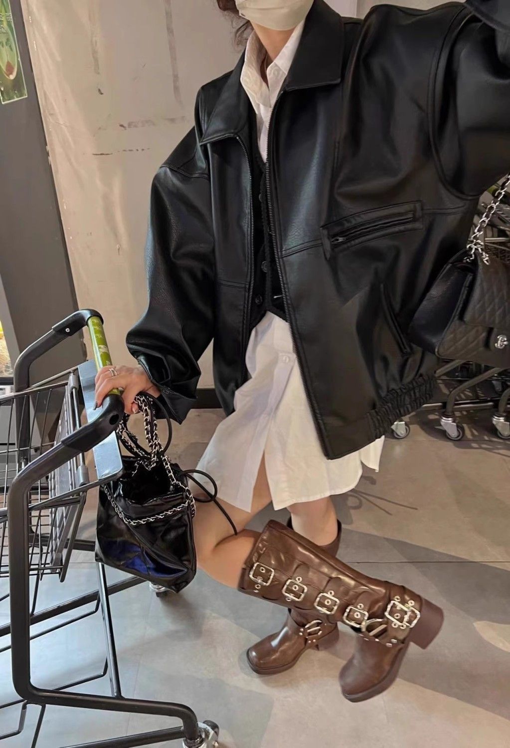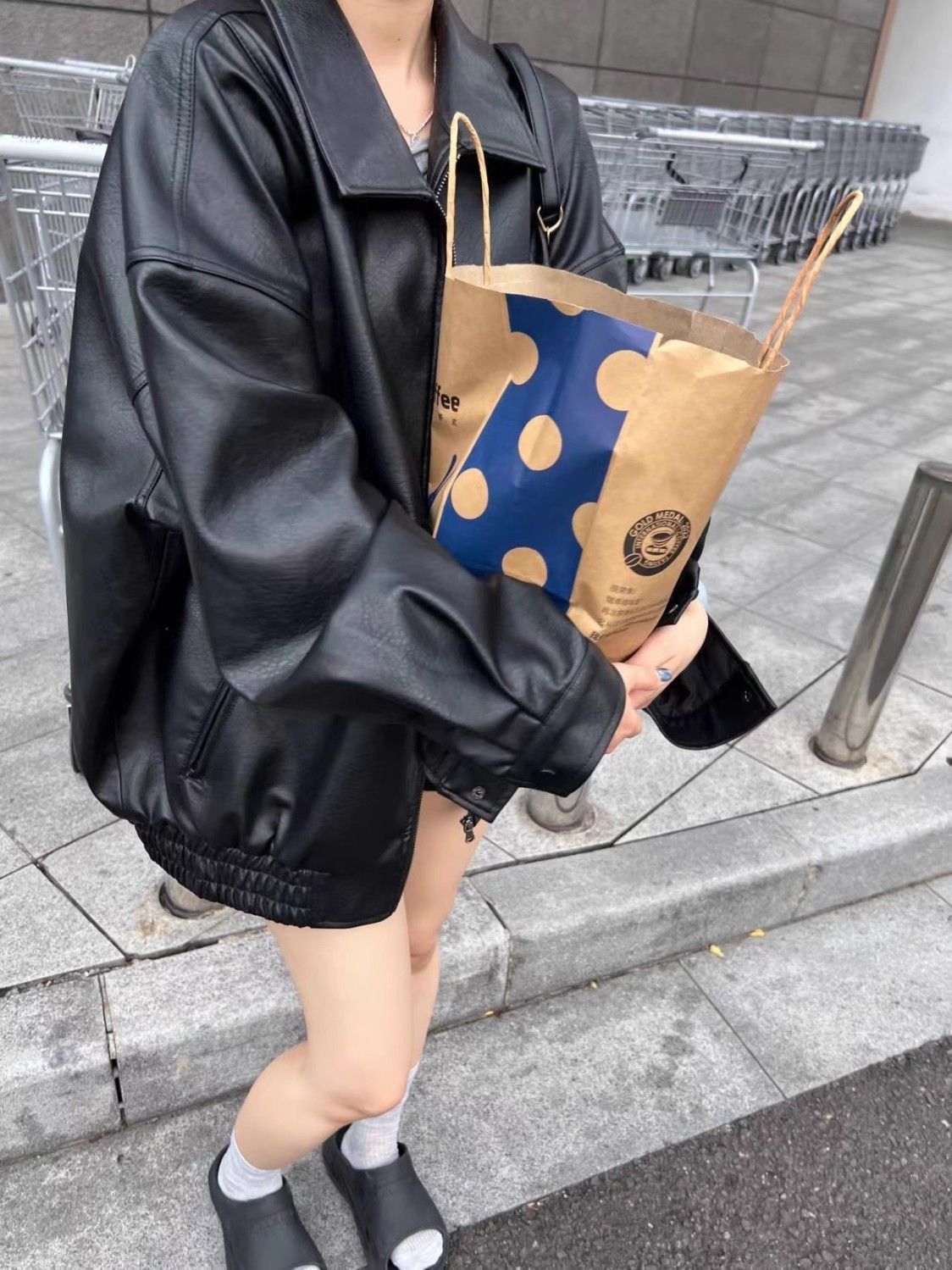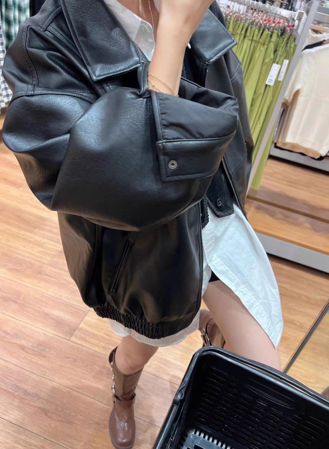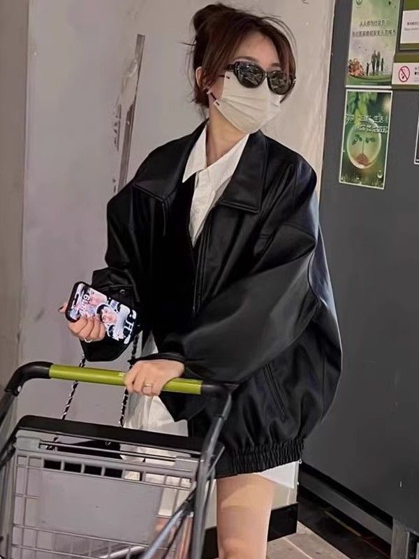 司南 摩登街头 美式复古PU皮翻领宽松显瘦皮衣夹克外套 SN8098