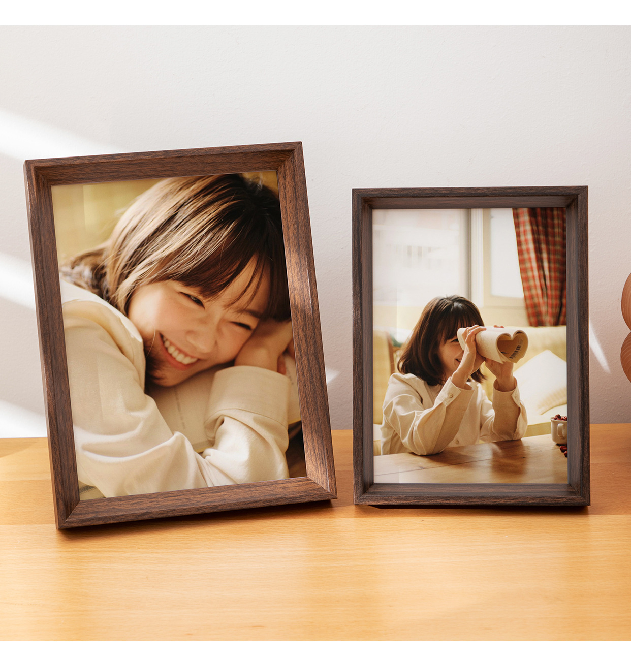 無垢材の質感のフォトフレーム、ハイエンドの空枠写真を額縁に加工 6inch diy 中空カスタム家族ポートレート
