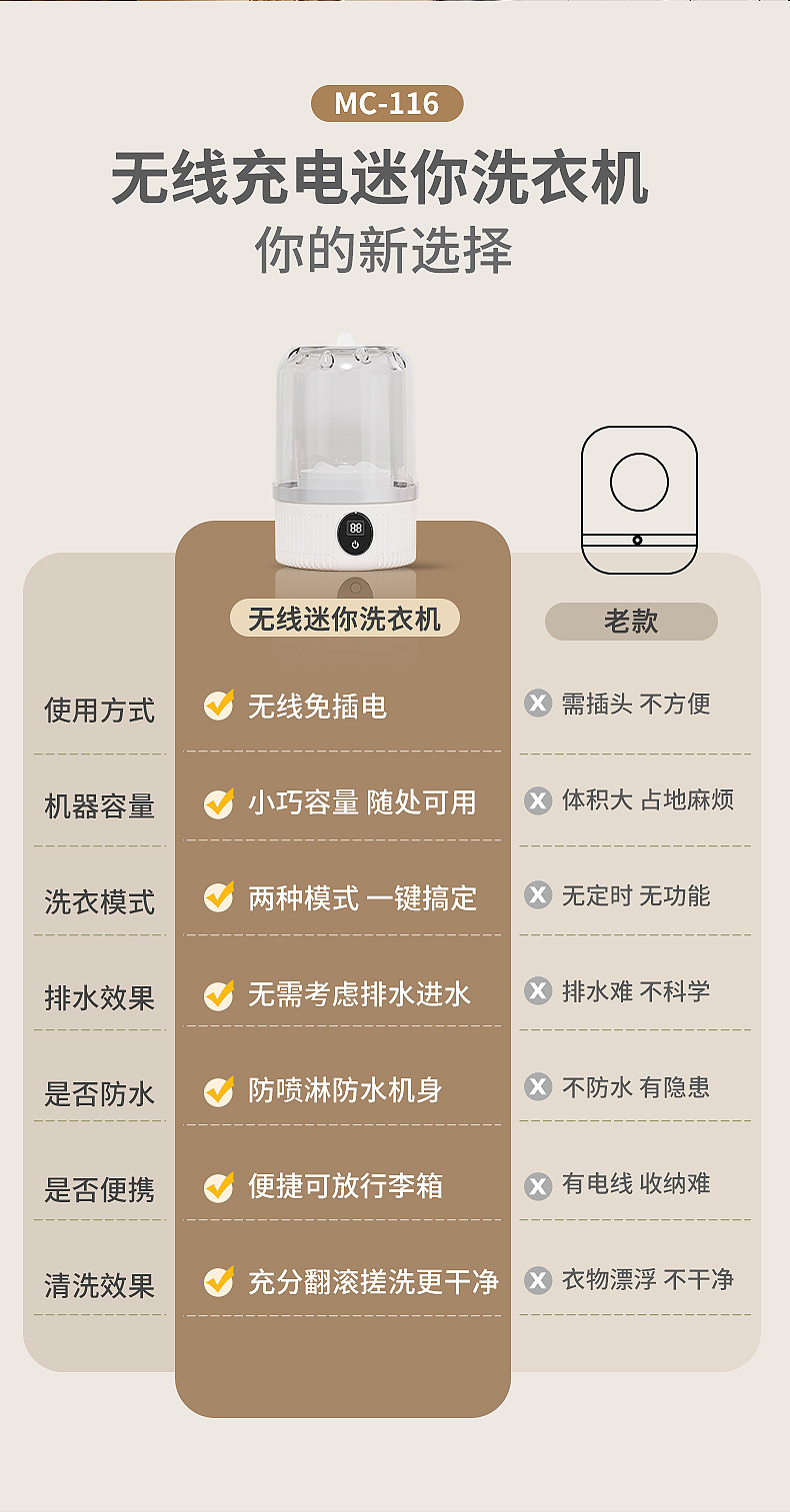 跨境新款充电迷你洗衣机内衣裤袜子便携式无线小型学生宿舍洗衣机