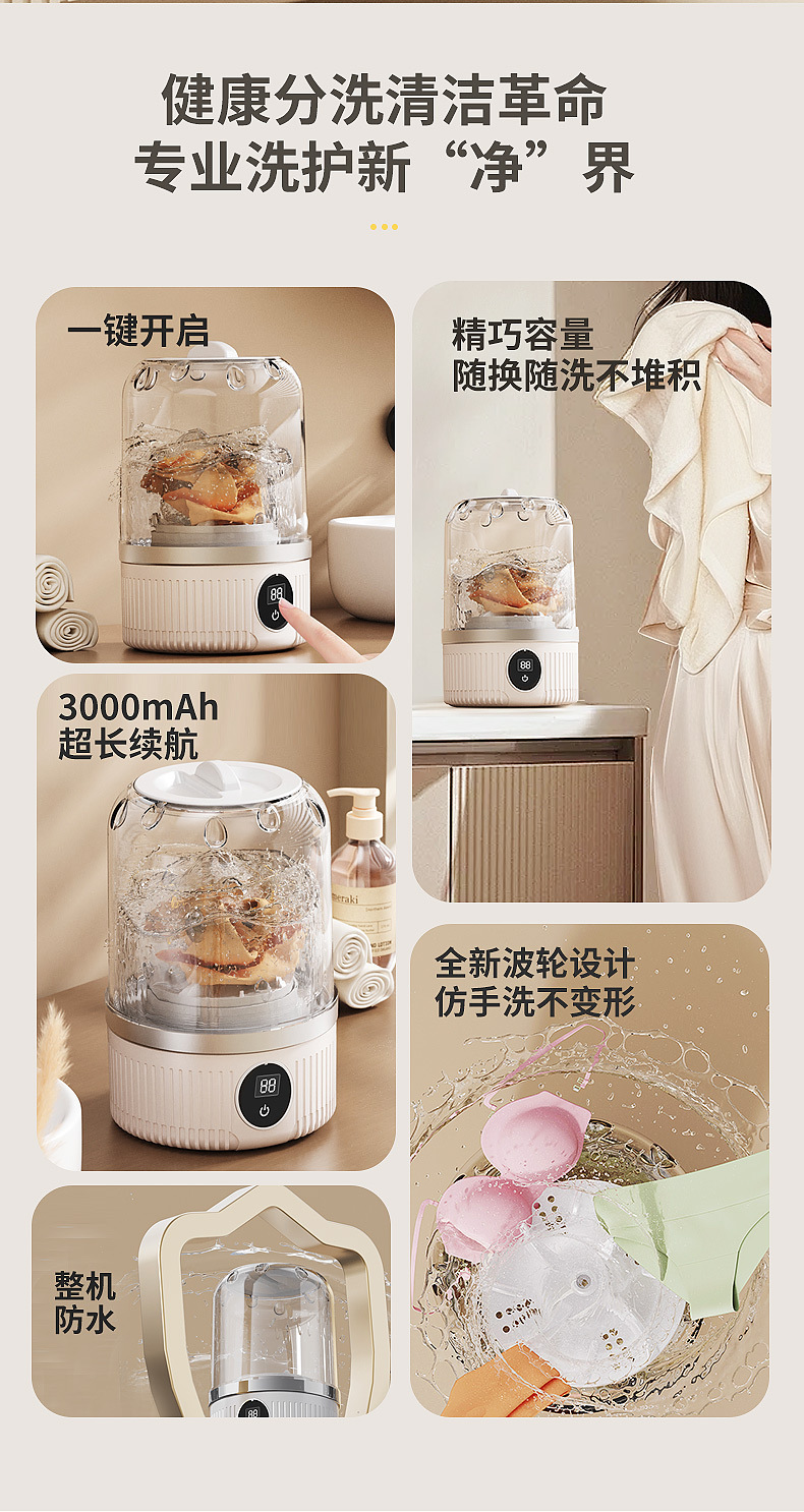 跨境迷你洗衣机学生宿舍便携式全自动内衣裤袜子清洗器小型洗衣杯