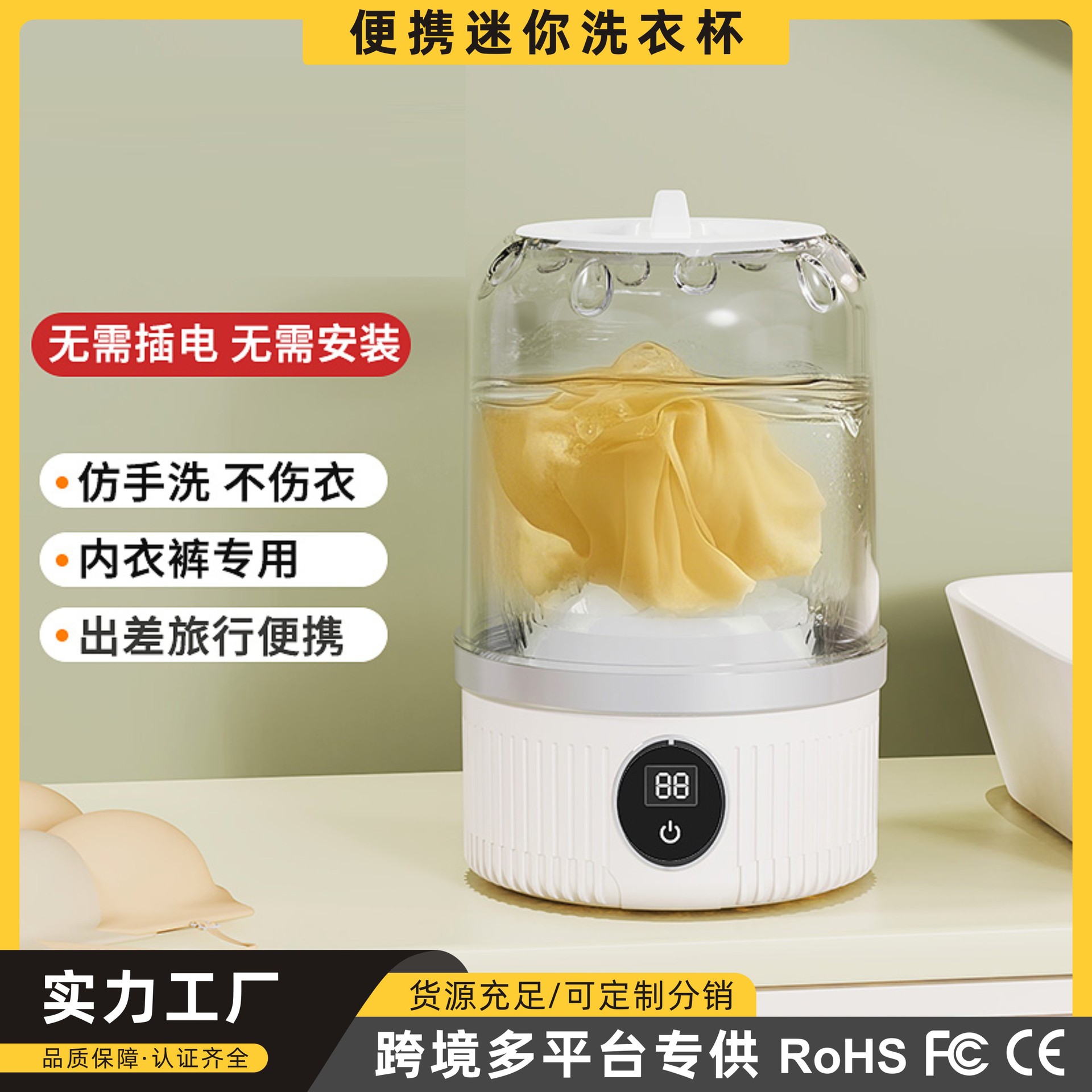跨境新款便携无线小型洗衣杯免安装家用洗衣机学生宿舍旅行洗袜机