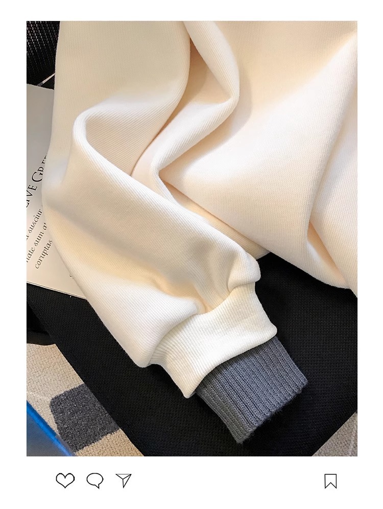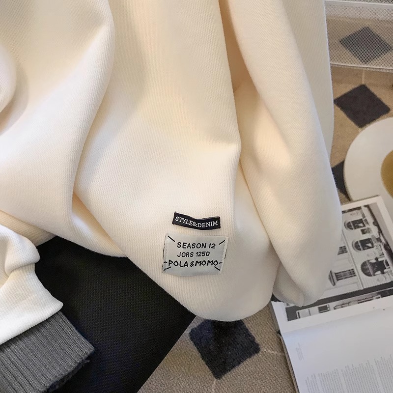 时尚加绒卫衣女秋冬新款针织polo领拼接撞色学院风宽松甜美上衣潮