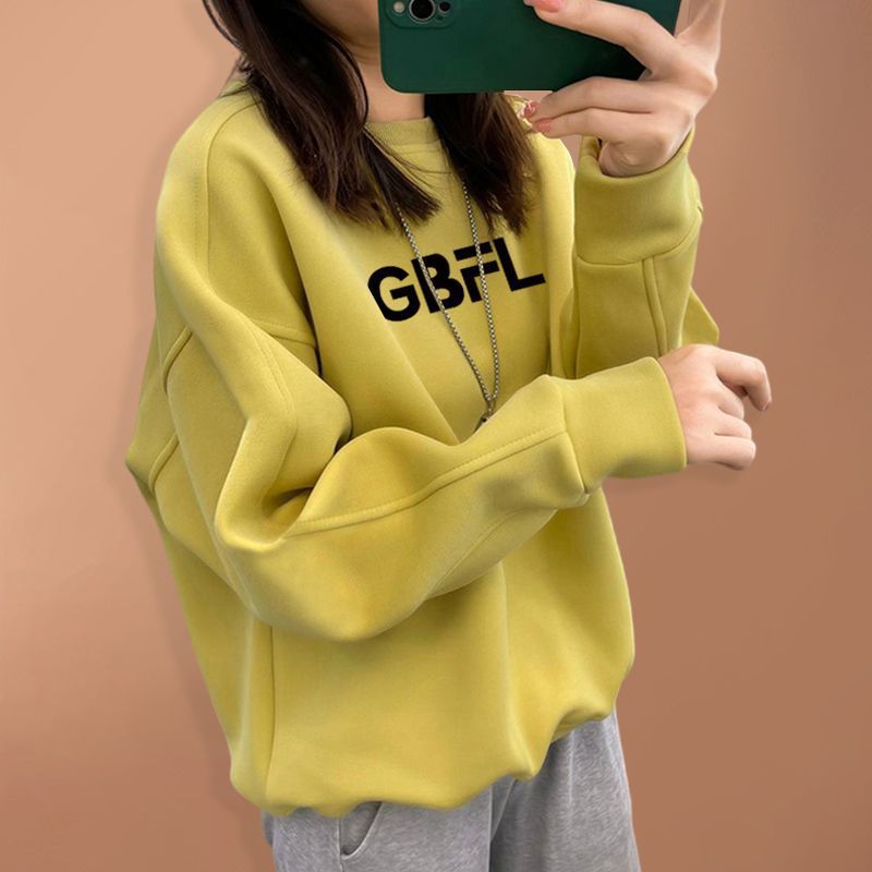 广州十三行韩货冬装圆领卫衣女加绒秋冬高品质韩系穿搭打底衫上衣