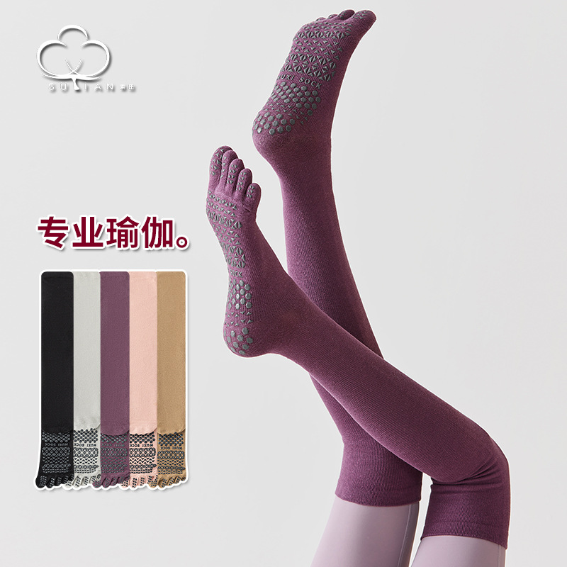 代件秋冬長筒膝を越えて指ヨガ靴下滑り止め五本指スポーツ靴下保温ダンス靴下