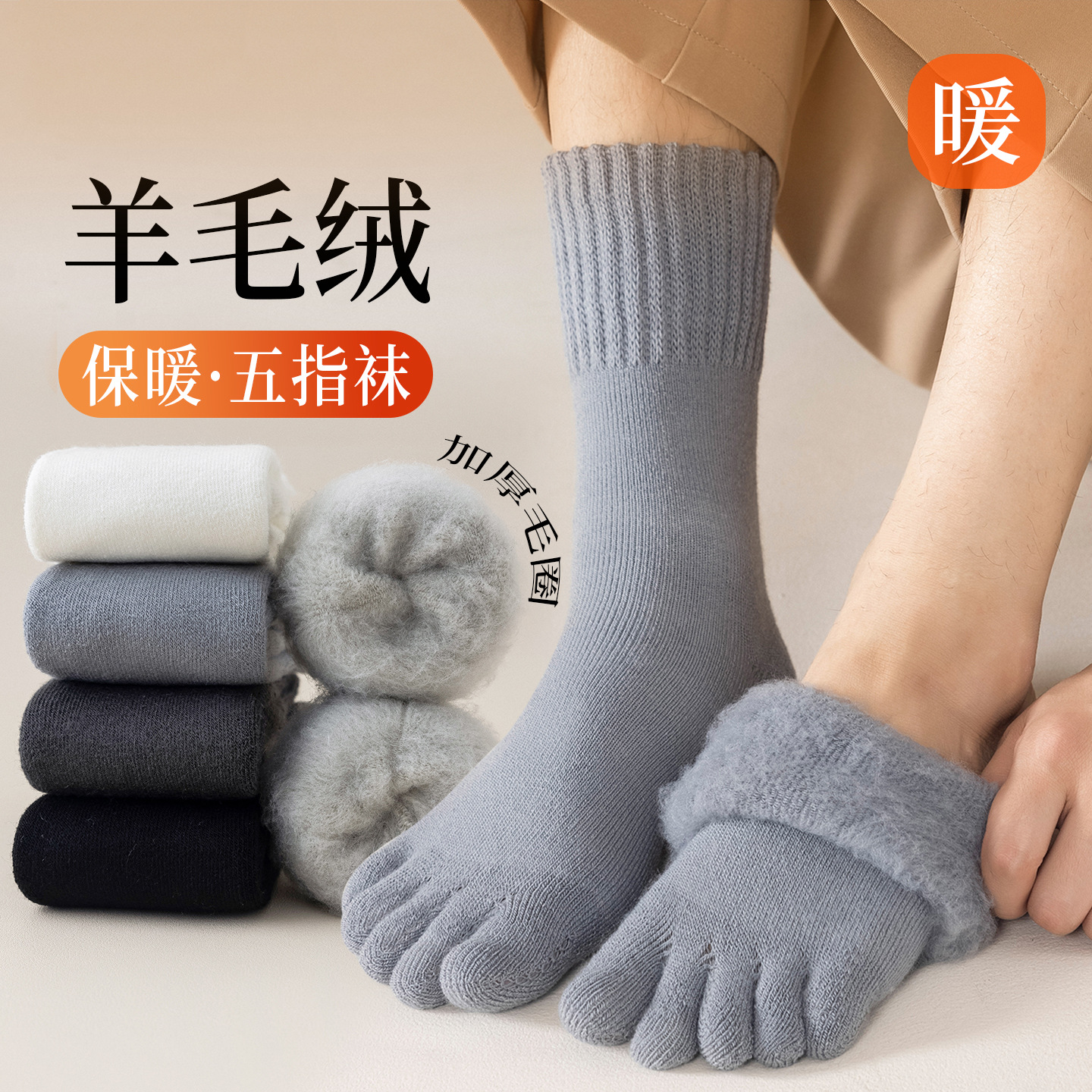 羊毛五指袜男中筒加绒保暖分趾袜脚趾袜保暖加厚毛圈男生五趾长筒
