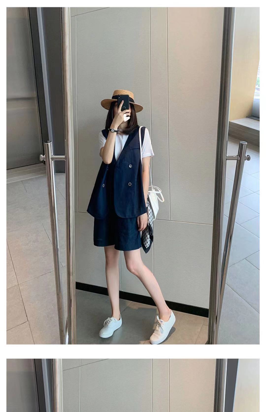 ネイビーブルーのショートパンツ,2点セット【ベスト+ショーツ】,3点セット[ベスト+ショーツ+Tシャツ]