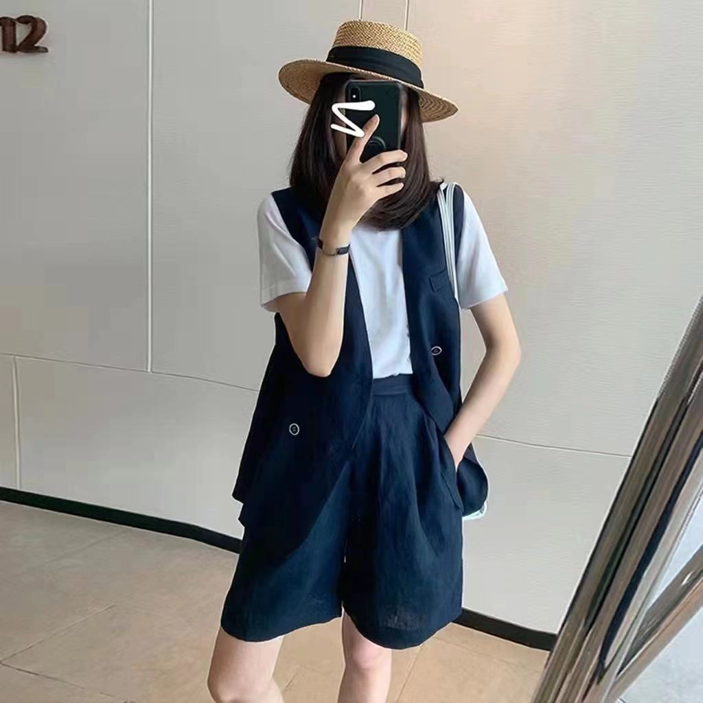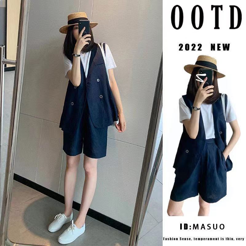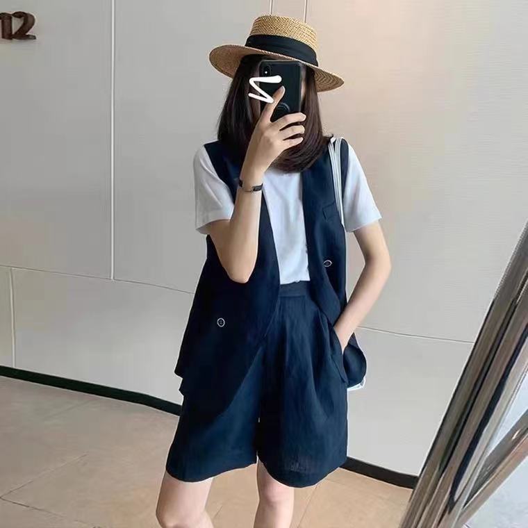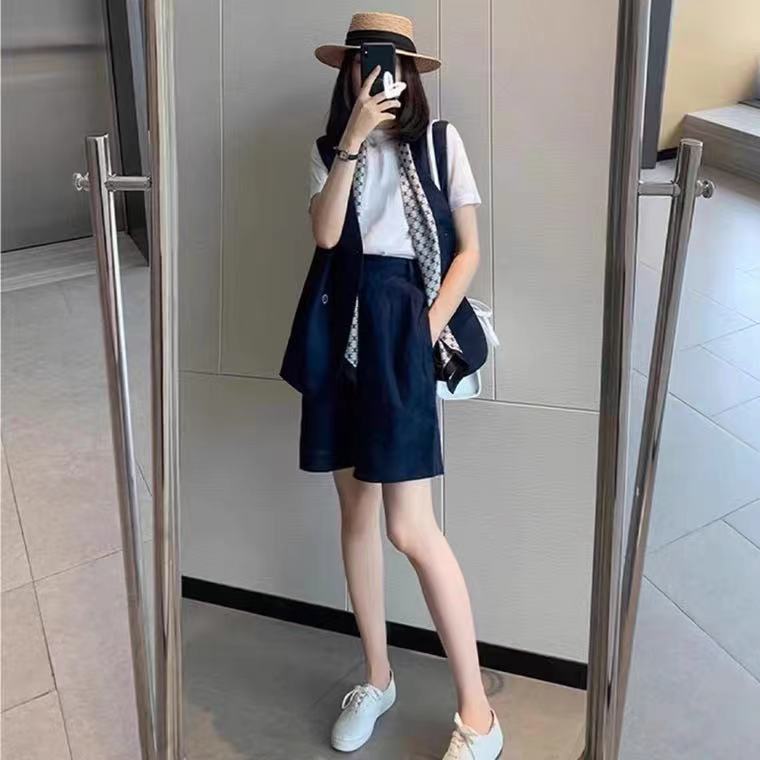 女性用カジュアルスーツスーツ2025年夏ネットセレブカジュアル薄型スタイル小柄な気質年齢軽減ファッション3点セットトレンディ