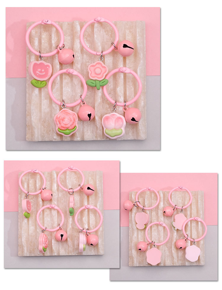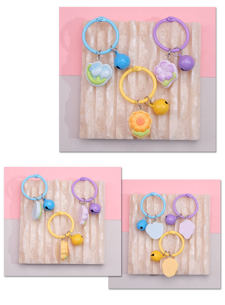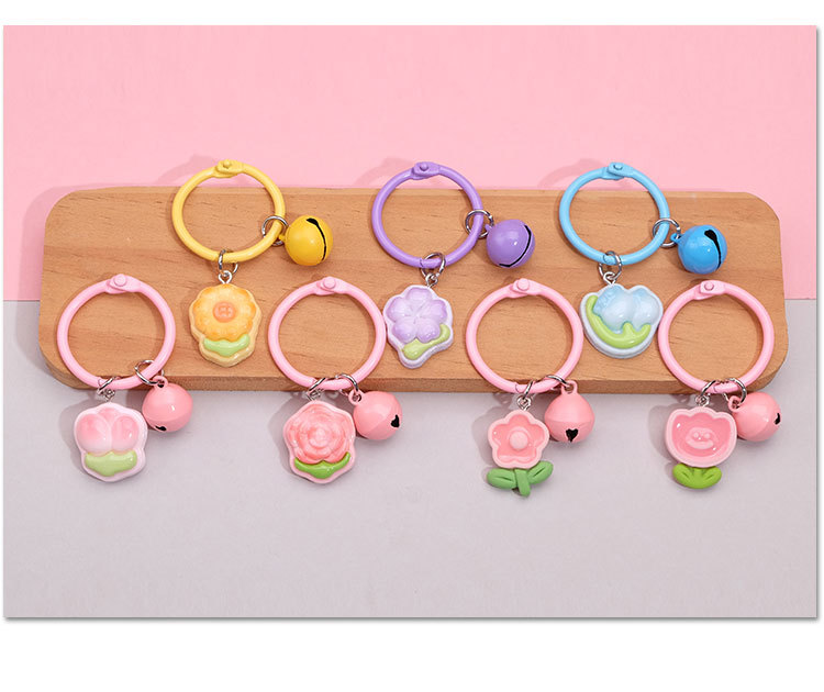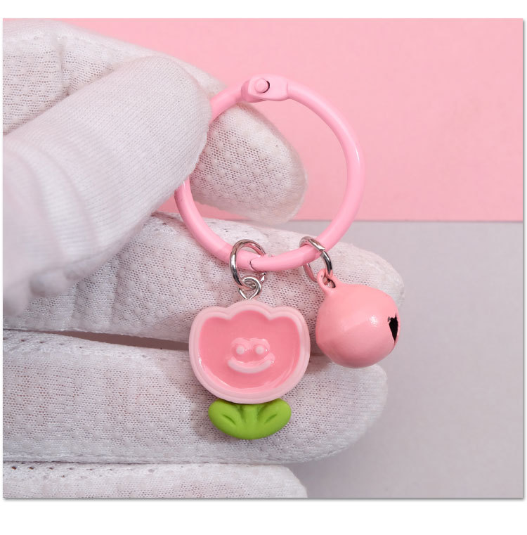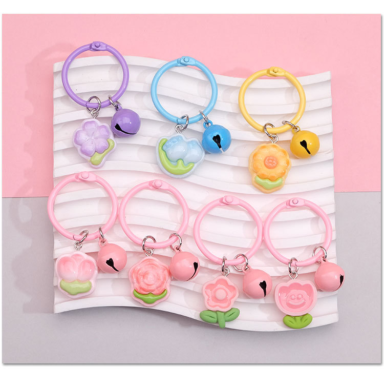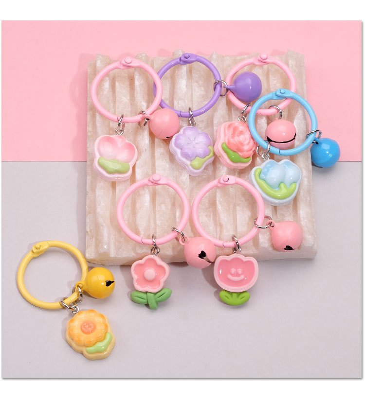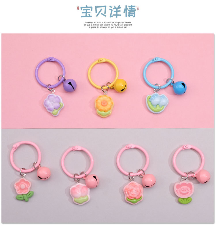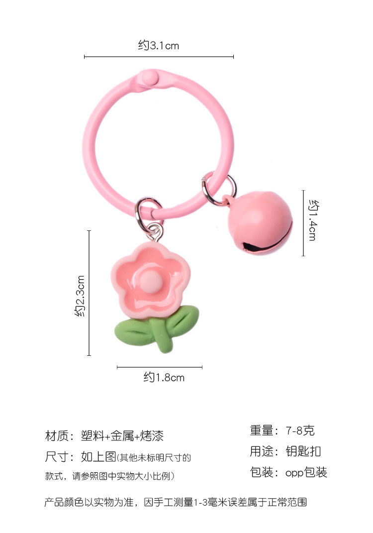 创意彩色花朵铃铛钥匙扣手工小清新可爱钥匙圈包包挂饰DIY配件
