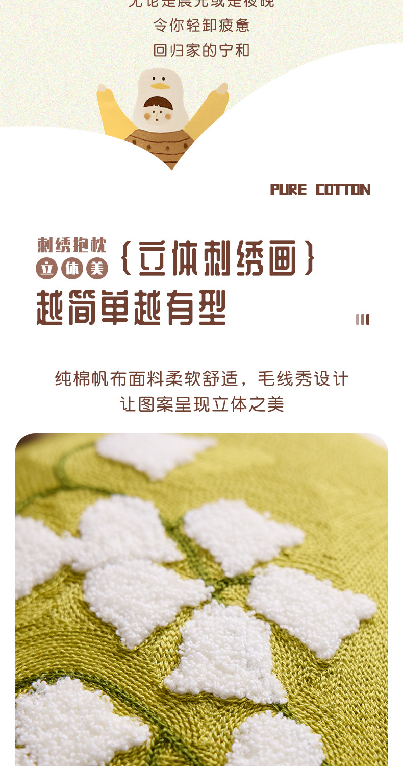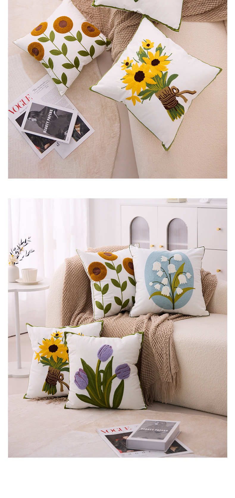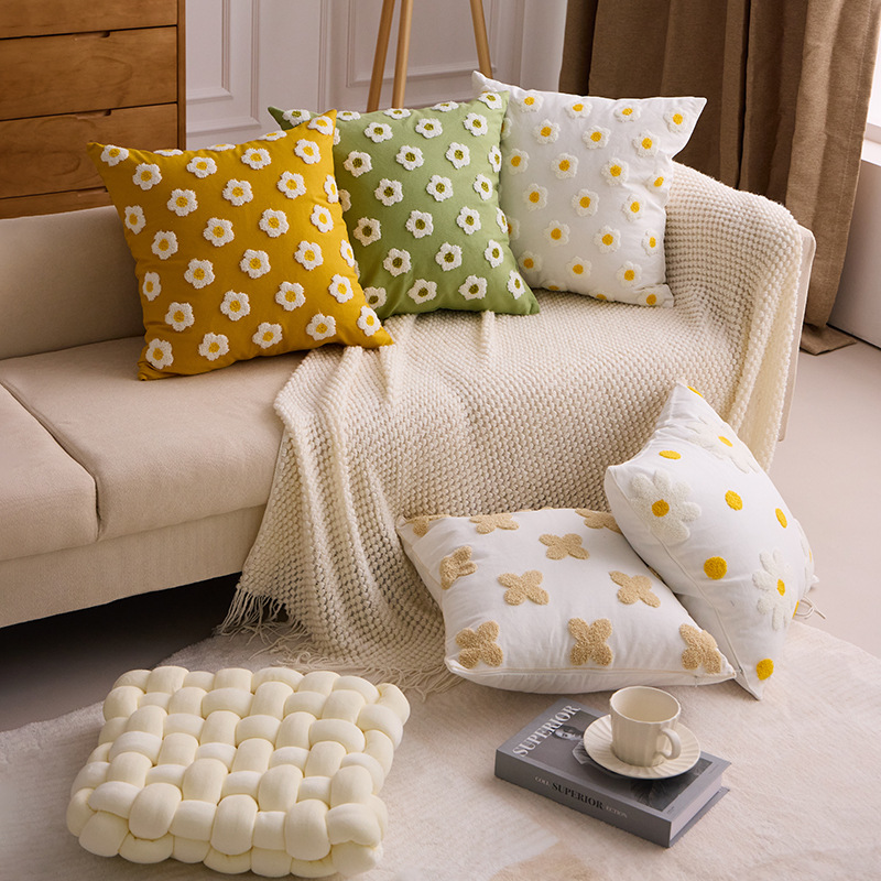 新しいクロスボーダーデザインのデイジー柄タオル刺繍枕カバー、ベッドサイドクッション、ソファ、車、リビングルーム用背もたれ枕、腰当て、芯入り可能