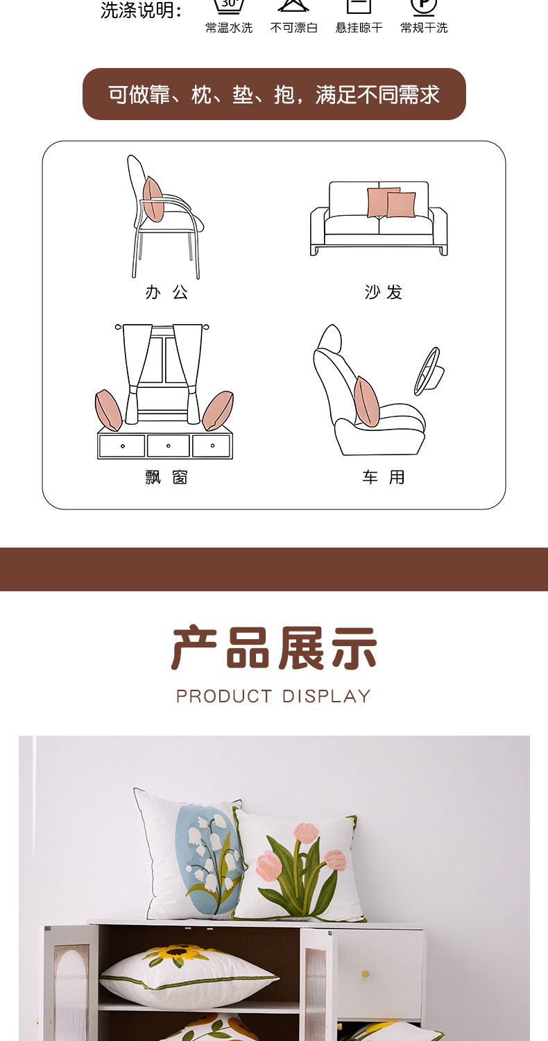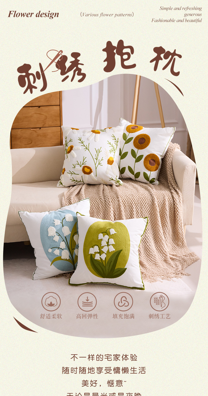 新しいクロスボーダー花柄タオル刺繍枕カバーベッドサイドクッションソファ車リビングルームクッション背もたれ腰は芯を含むことができます