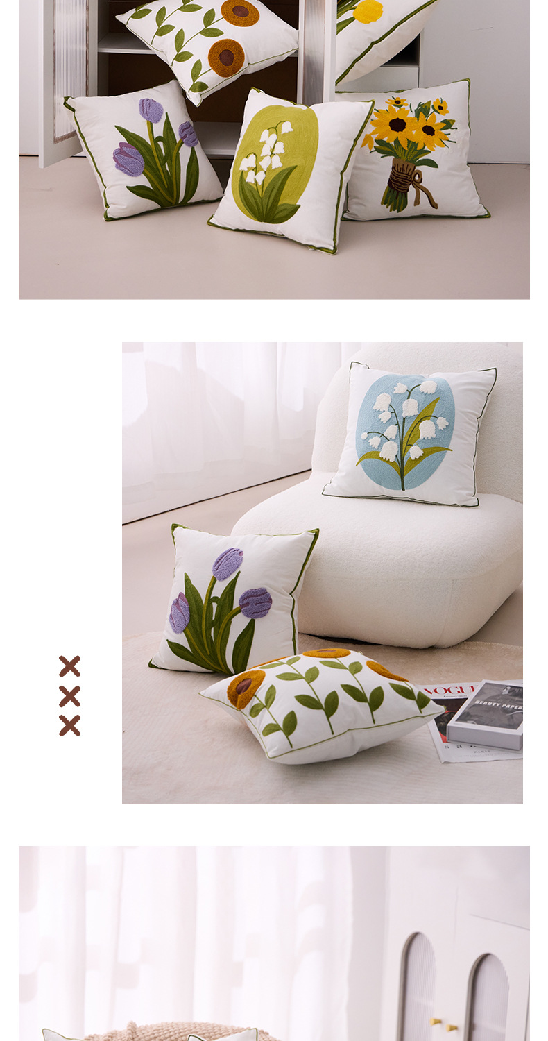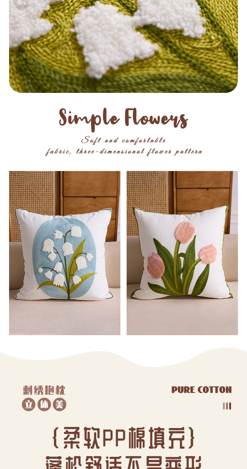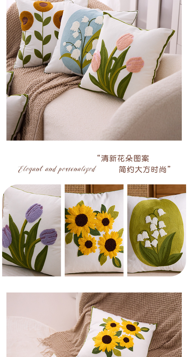 新しいクロスボーダー風の花柄タオル刺繍枕カバー、ベッドサイドクッション、ソファ、車、リビングルーム用枕、背もたれ、腰用、芯入り可能