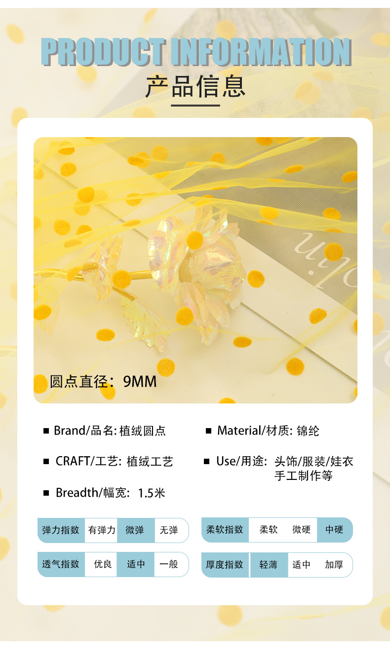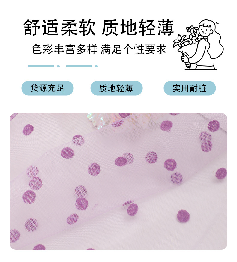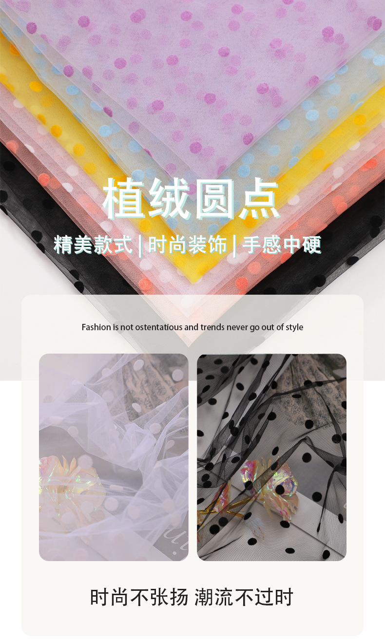 小圆点植绒网纱面料童装公主裙打底衫棉纶服饰包装网眼布装饰网
