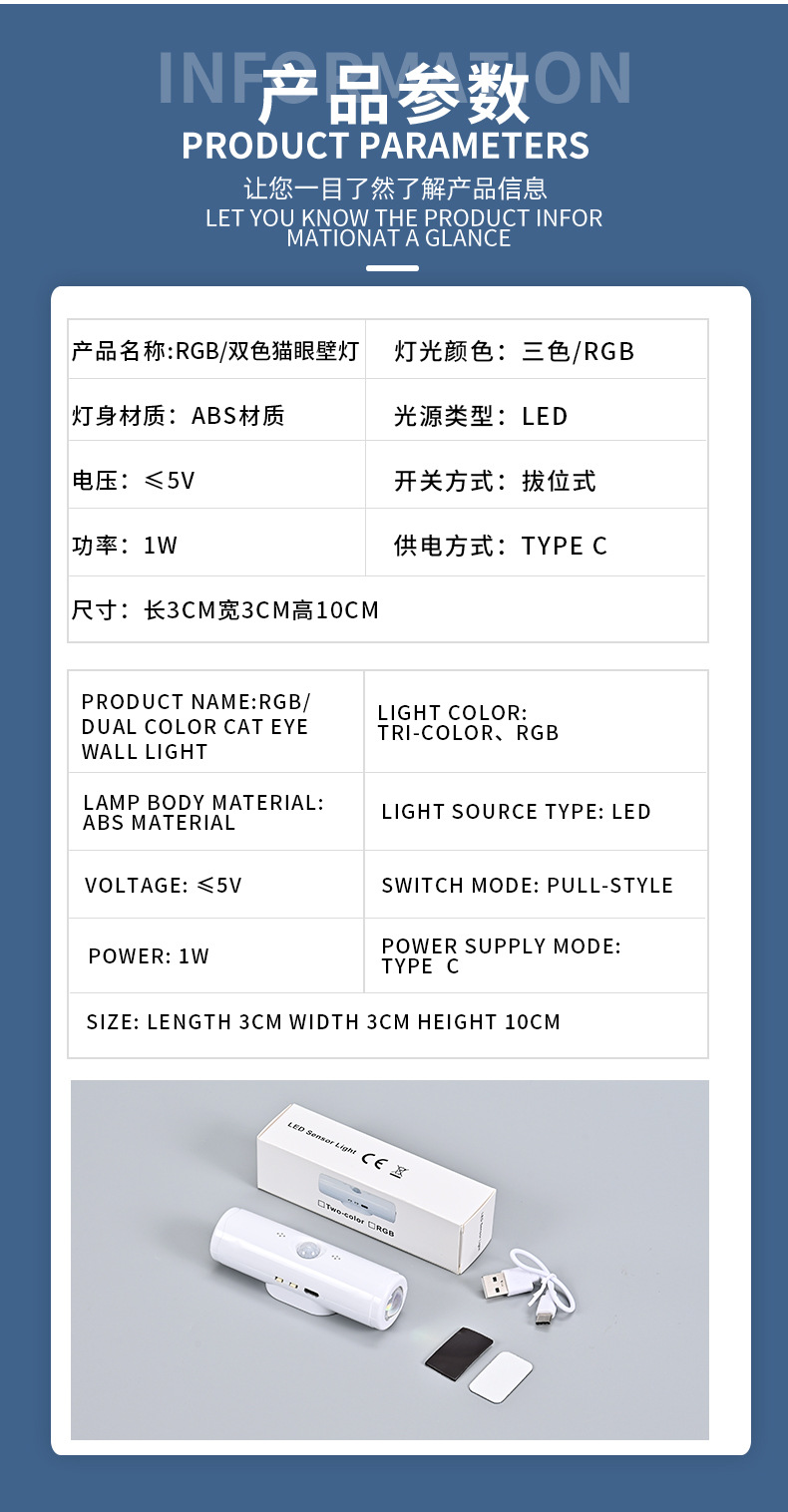 跨境明装室内猫眼壁灯led现代简约三色背景走廊过道卧室床头灯