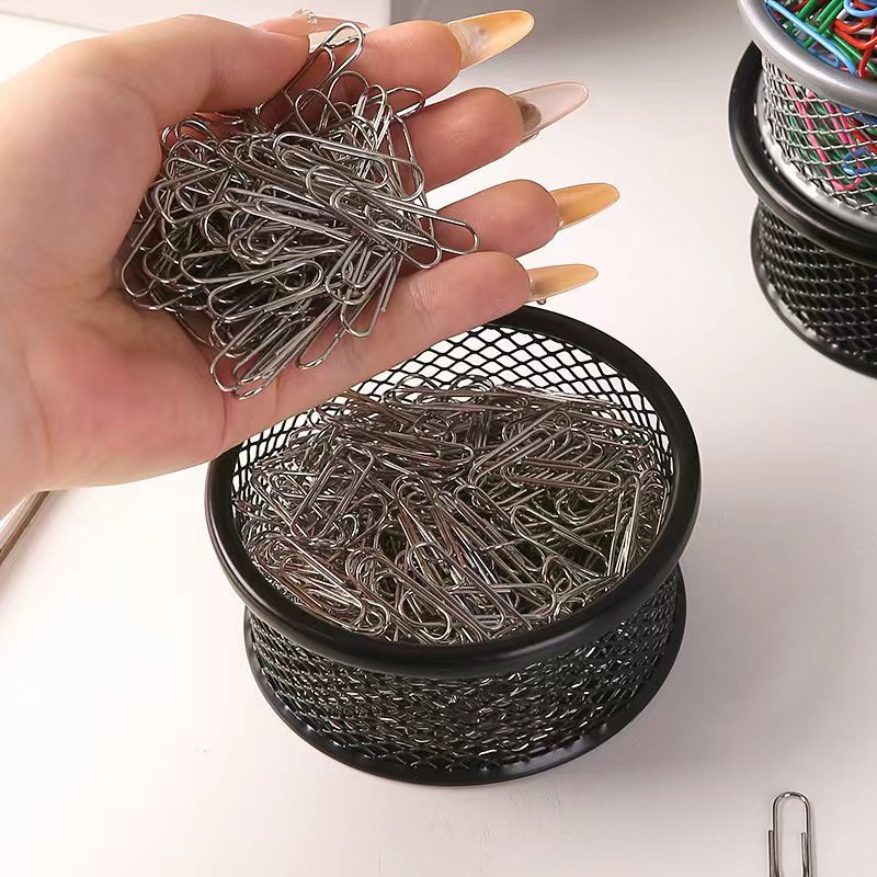 金属笔筒批发回形针订书机铁艺收纳盒可叠加办公桌面笔桶跨境专供
