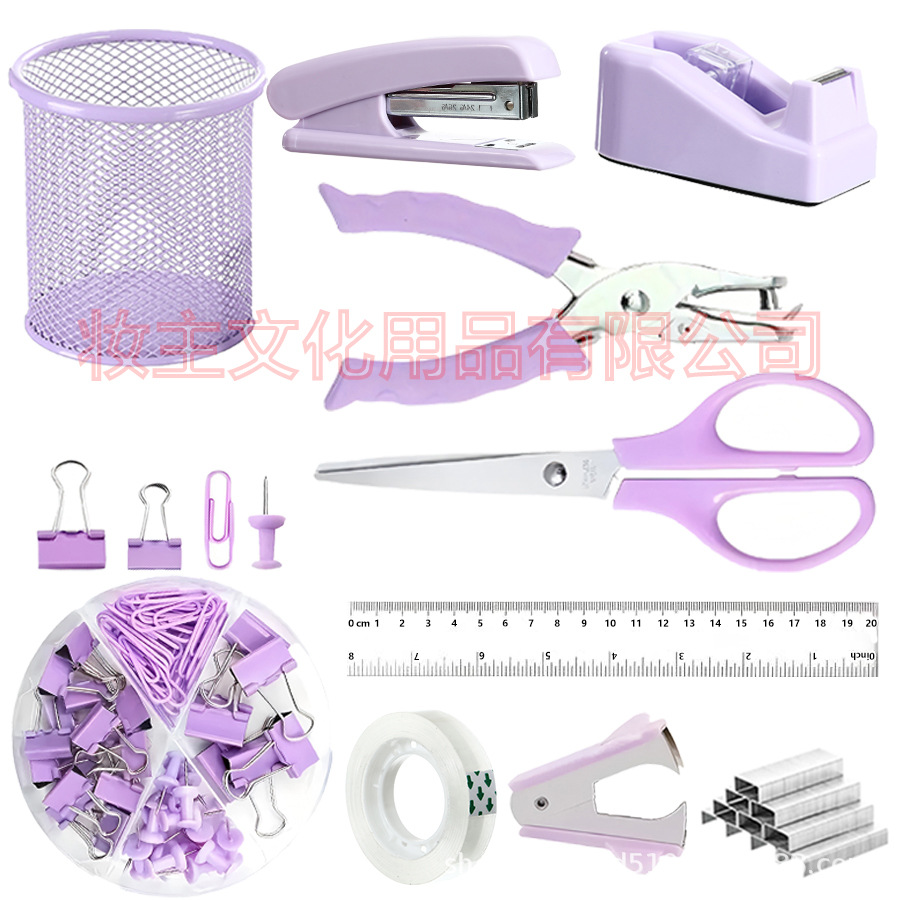 クロスボーダーペンホルダーオフィスセットマカロンカラー文具ホッチキスはさみテープステープルリムーバーステープル収納ボックス