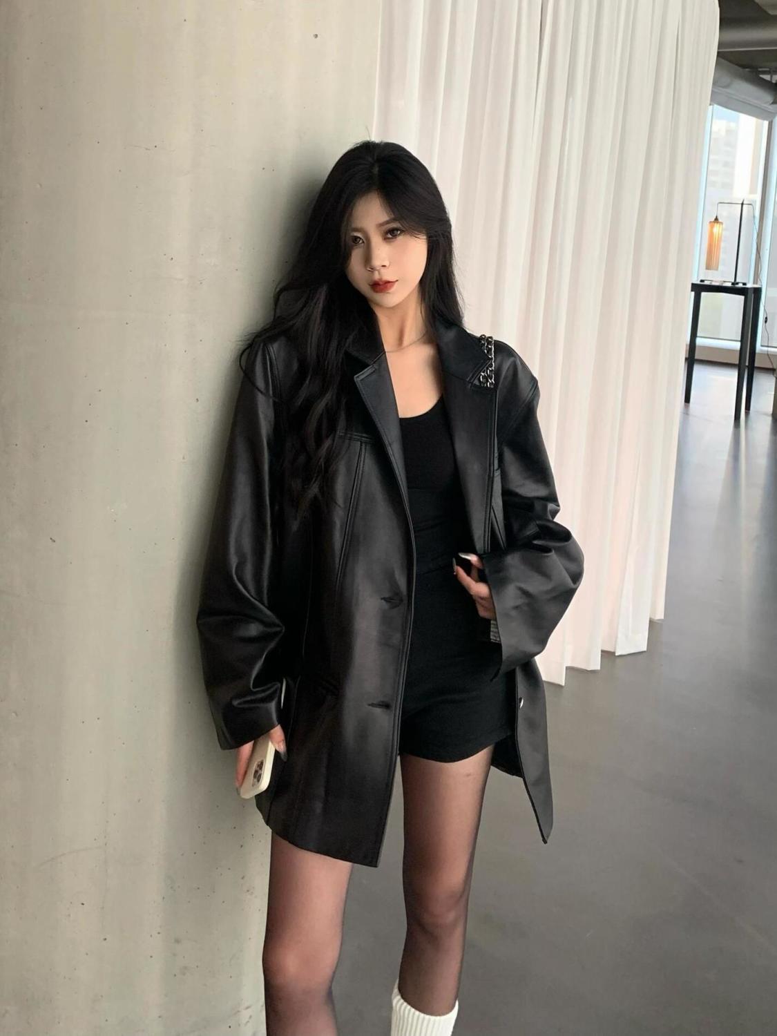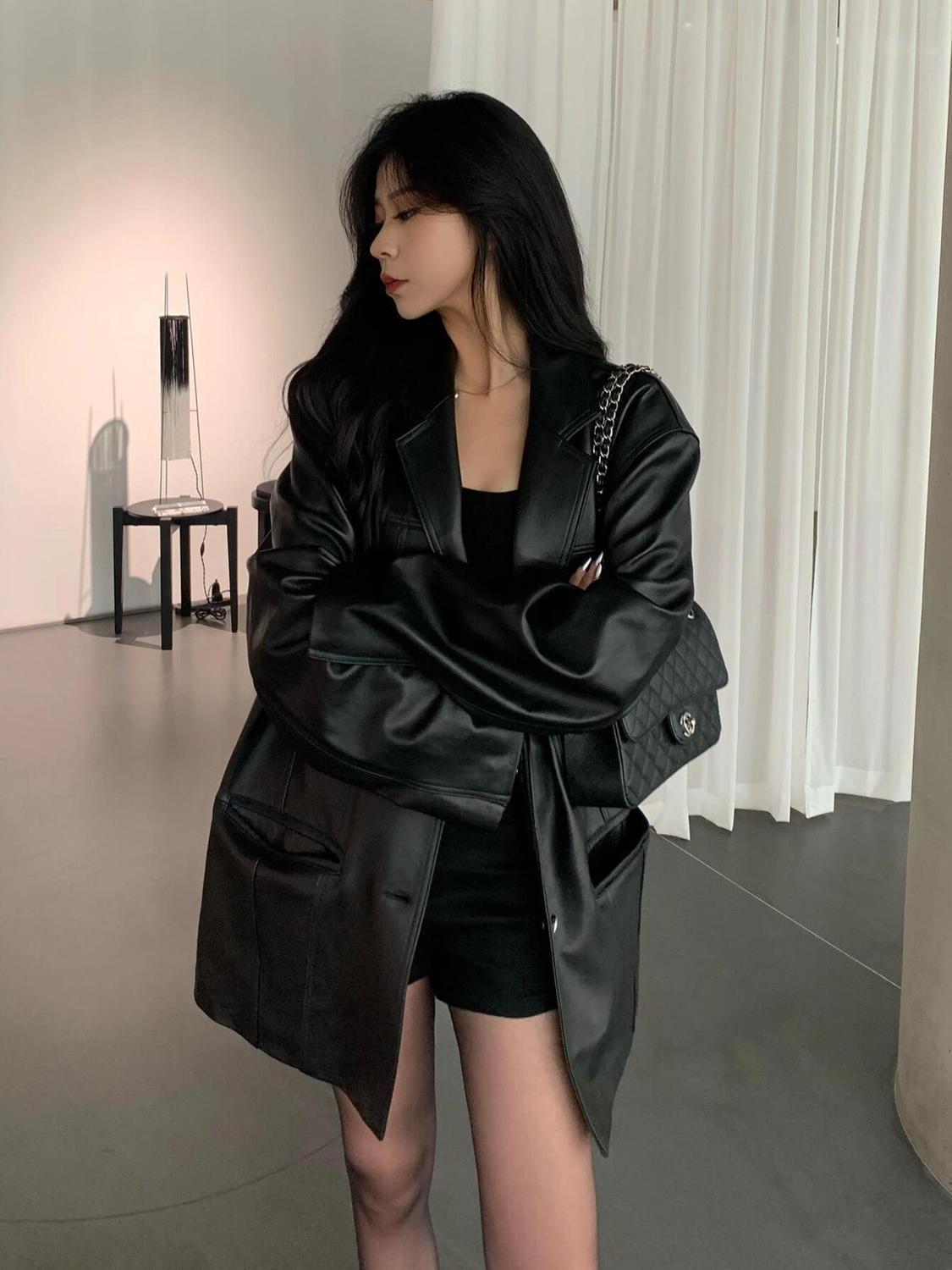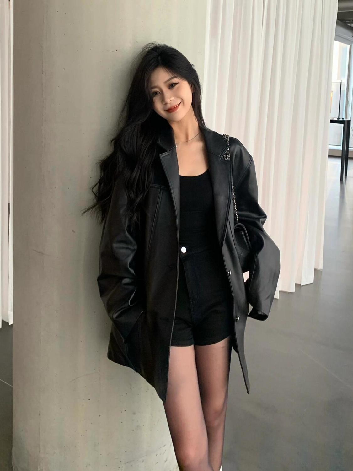 女性用ブラックレザージャケット2025秋冬新スタイルユニークで超見栄えの良いジャケットは今年小柄な人向けに人気です