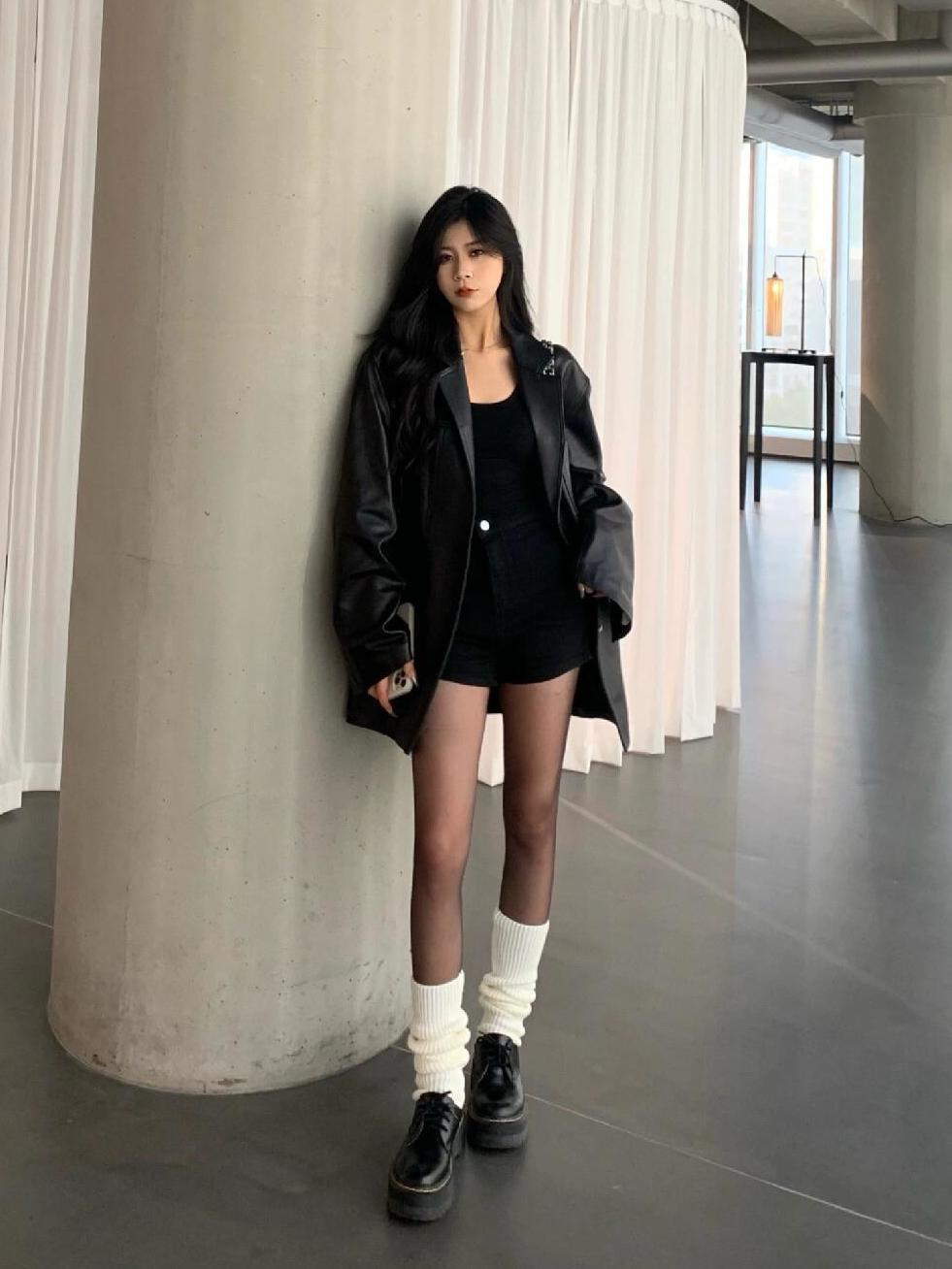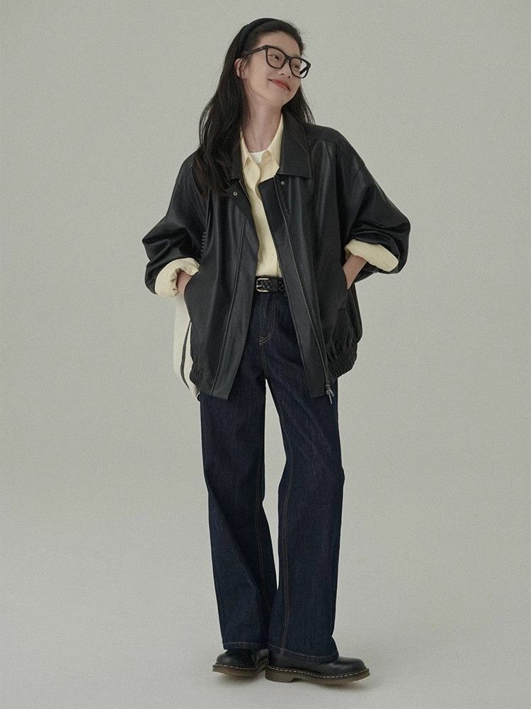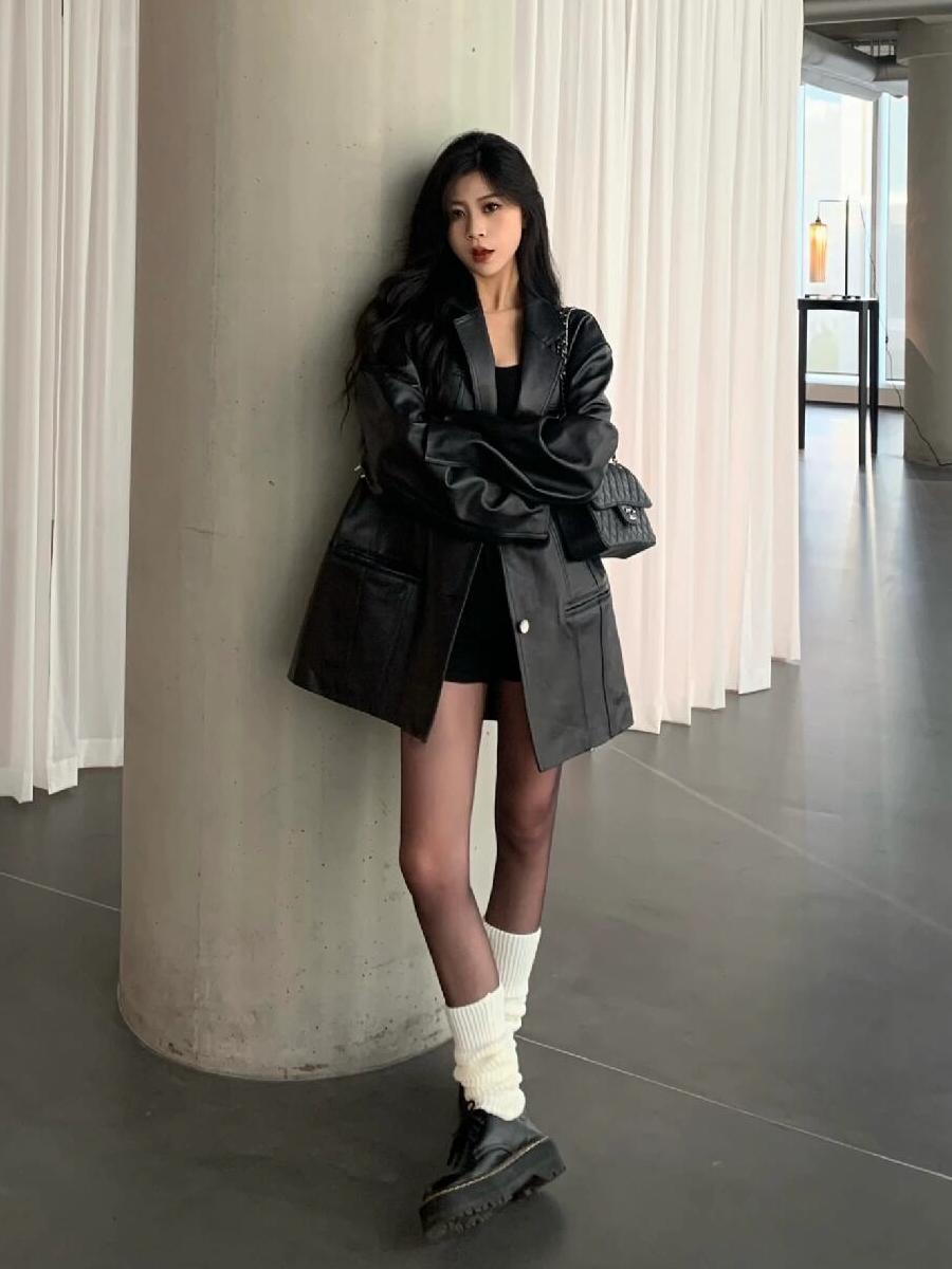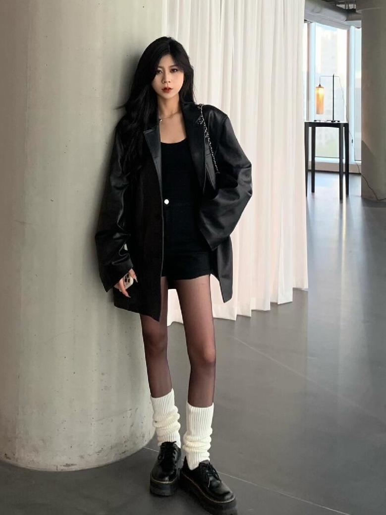女性用ブラックレザージャケット2025秋冬新スタイルユニークで超見栄えの良いジャケットは今年小柄な人向けに人気です