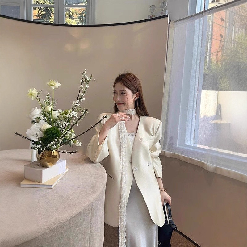 高级感缎面小西装外套女2025春秋季新款小个子西服名媛设计感小众