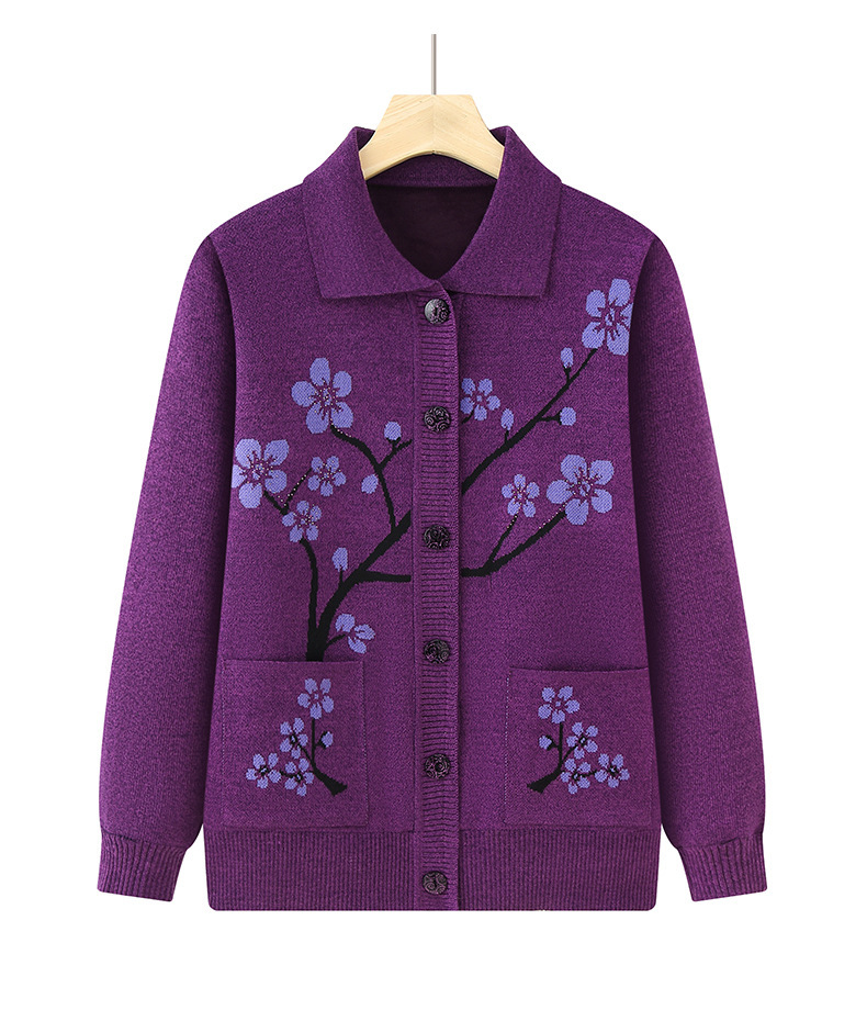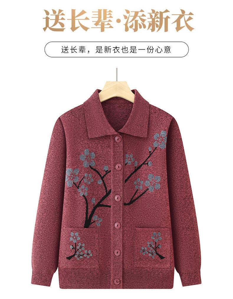 お年寄りの春の服のお母さんのコートのおばあさんのセーターの女性のベルベットのニットのカーディガンのおばあさんの秋冬の服の女性