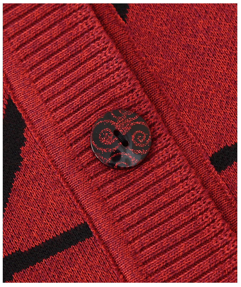 お母さんの服のファッションの秋のゆったりしたニットのカーディガンの外は中年の長袖のコートの上着の高齢者の赤いセーターを掛けます。