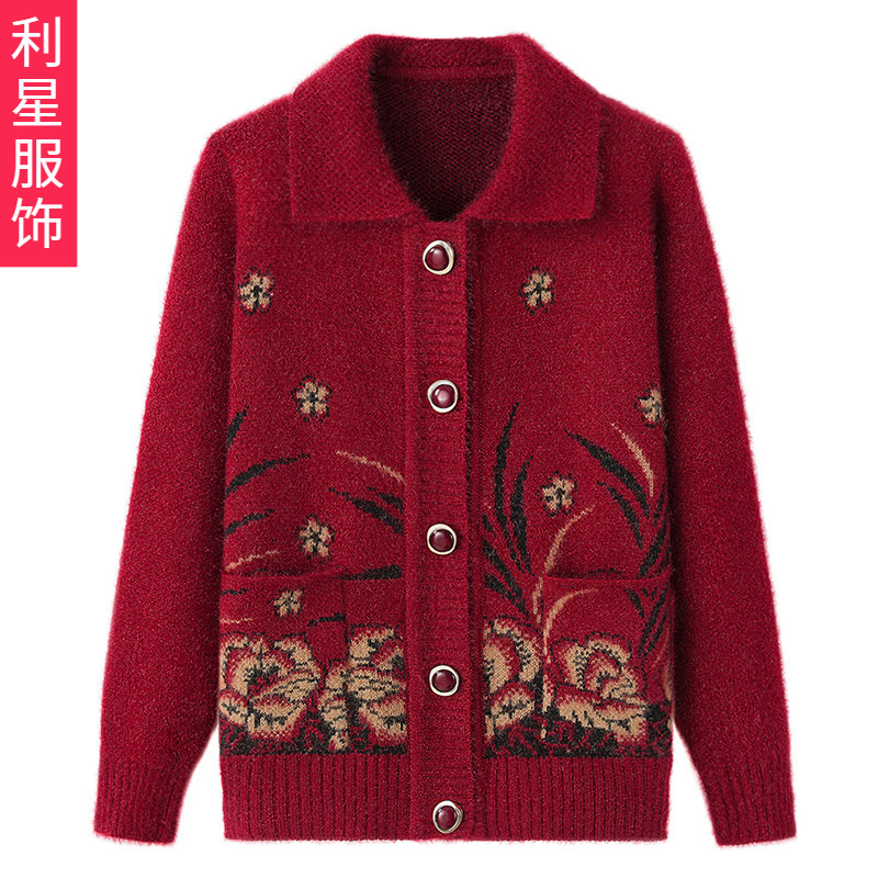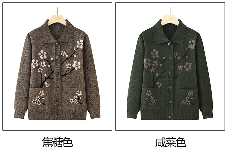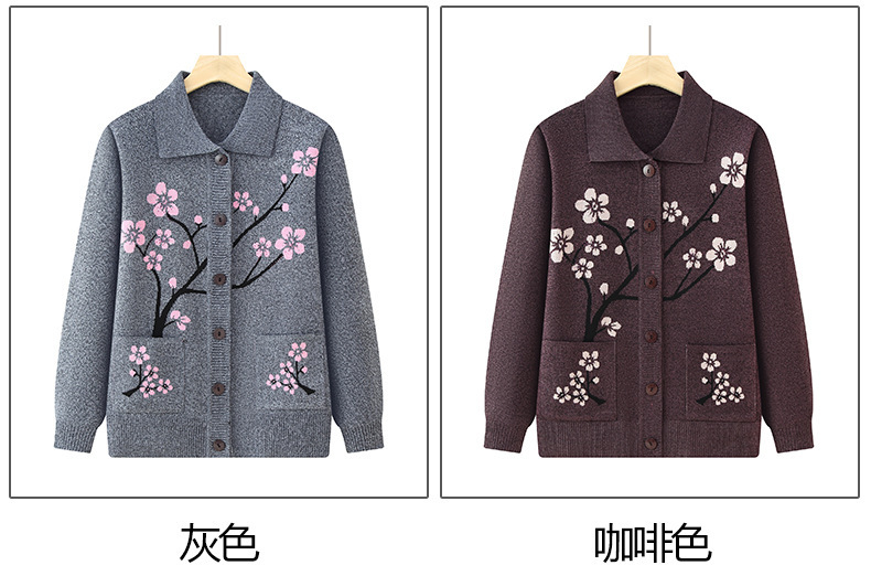 おばあさんはセーターのカーディガンを着て、中高年の秋冬服の女性のお母さんのニットコートを着て、春と秋を厚くします。