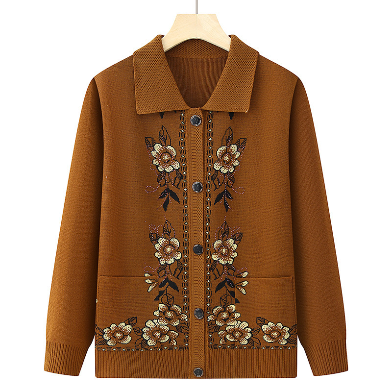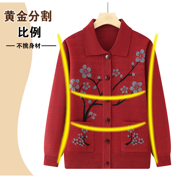 外贸出口跨境妈妈装毛衣开衫春秋外套老年人春秋针织衫女奶奶衣服