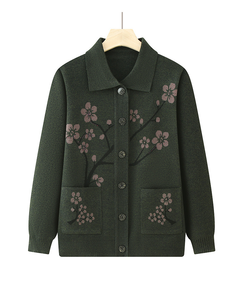 高齢者春秋着カーディガン女性保温下着ベルベット厚手おばあちゃんニットママ冬着コート