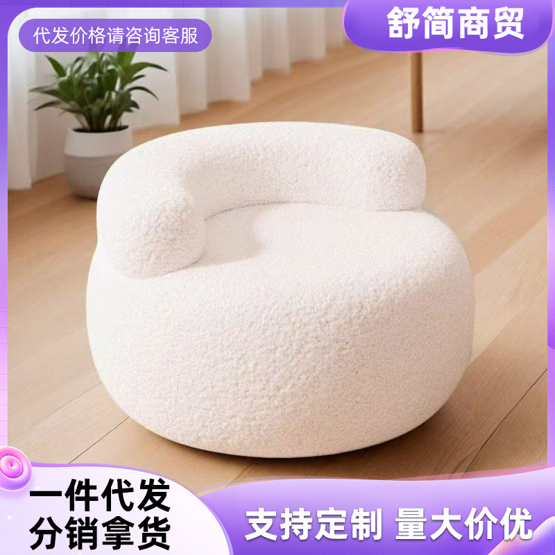 家用小凳子客厅圆凳羊羔绒靠背沙发奶油风沙发凳换鞋凳南瓜矮板凳