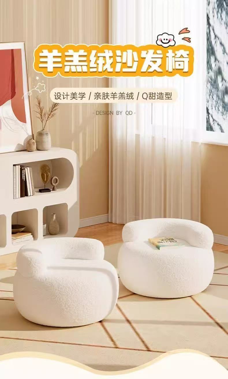 羊羔绒靠背椅换鞋凳沙发凳客厅茶几旁边矮凳板凳奶油风家用小凳子