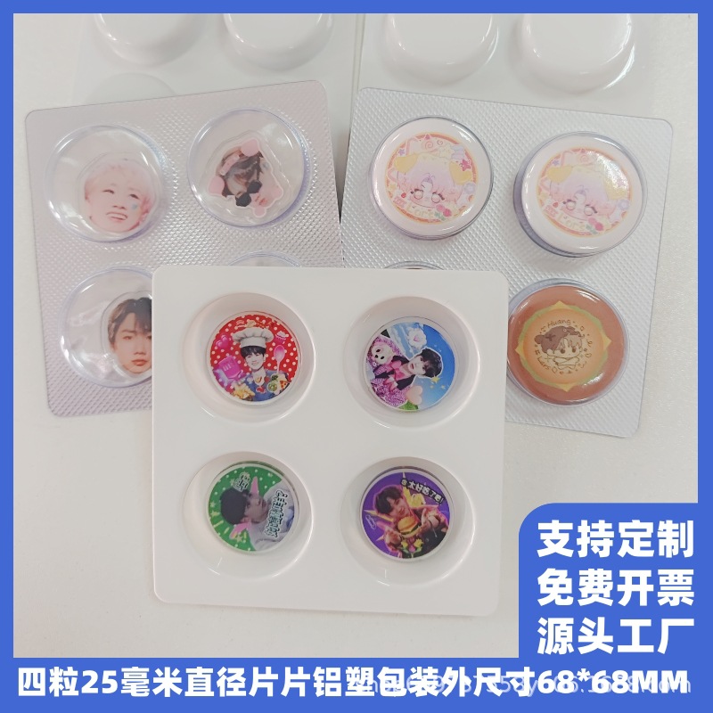 25MM 4ピース収納ミニバッジアルミプラスチック包装シェル錠剤ブリスター包装PVCブリスターシェル