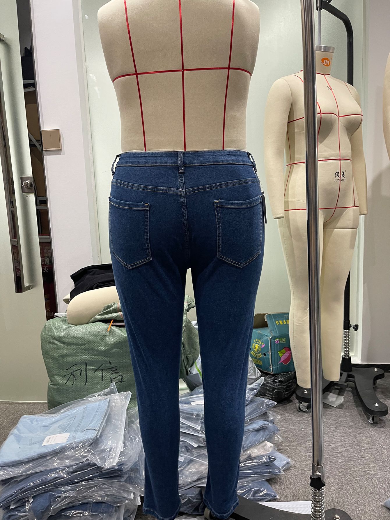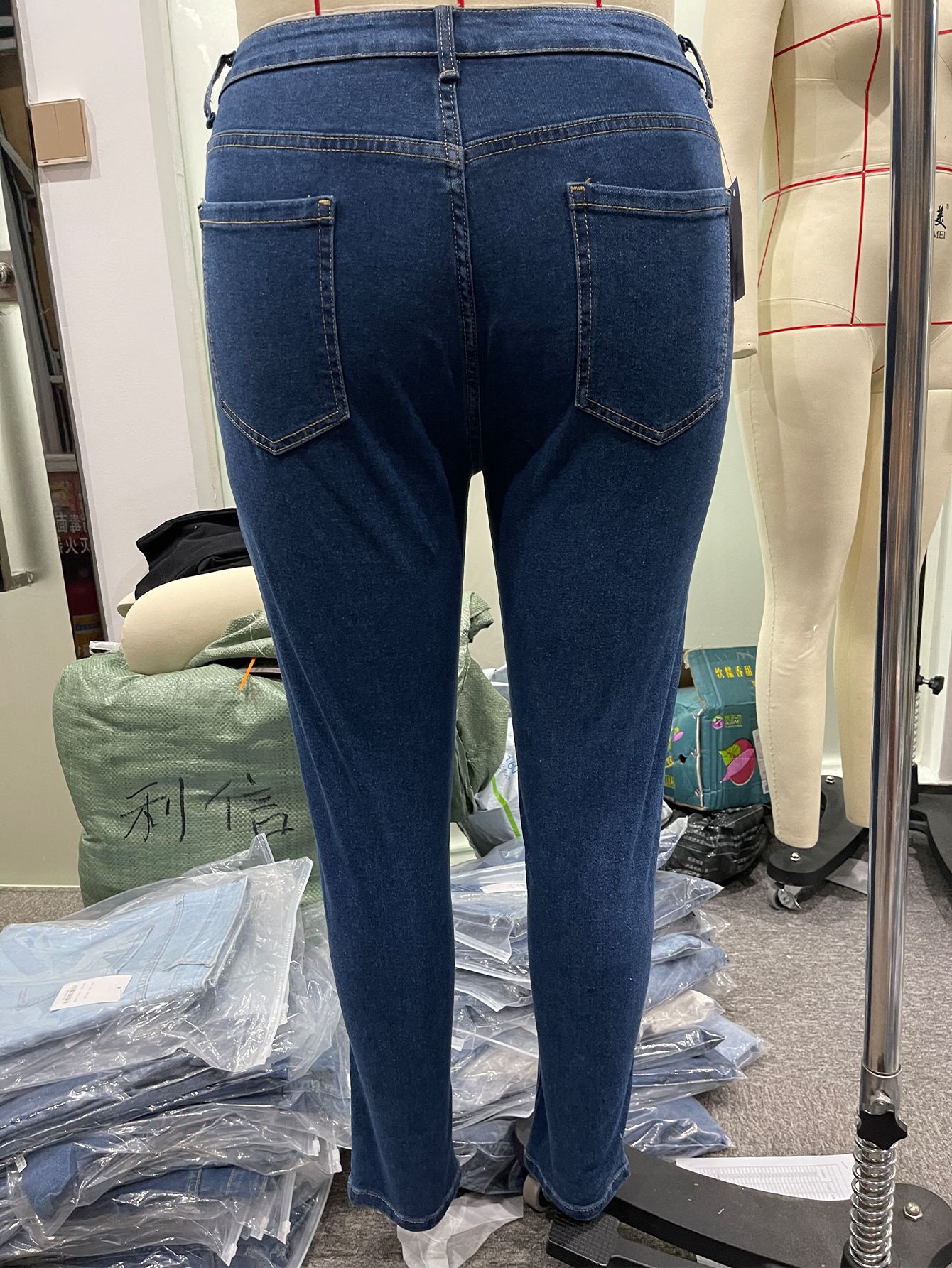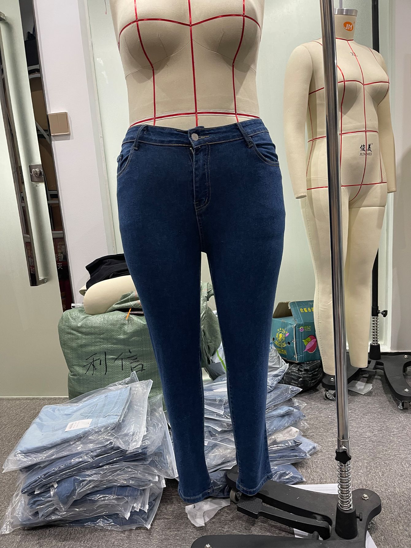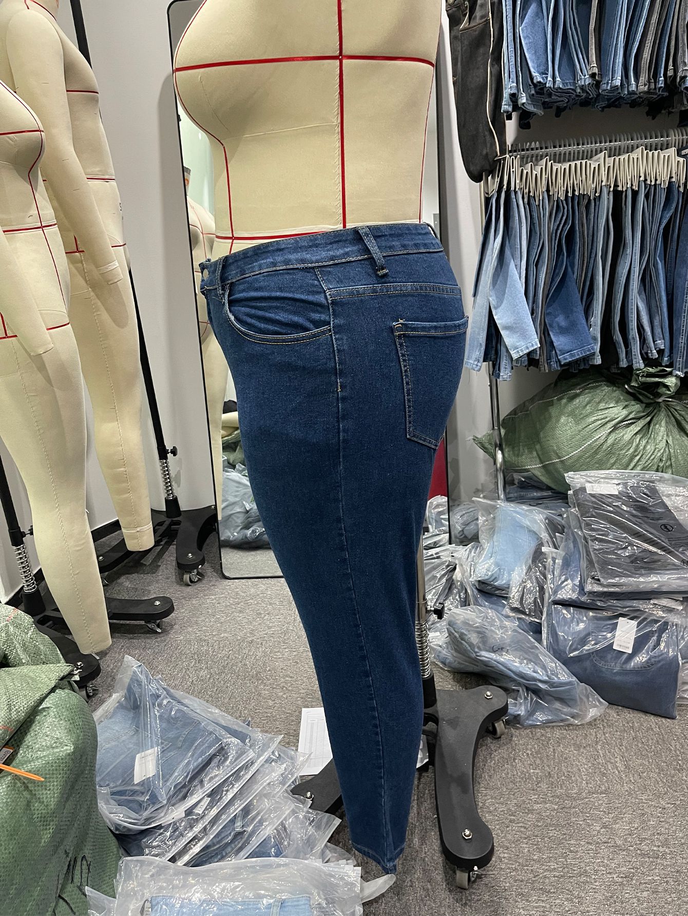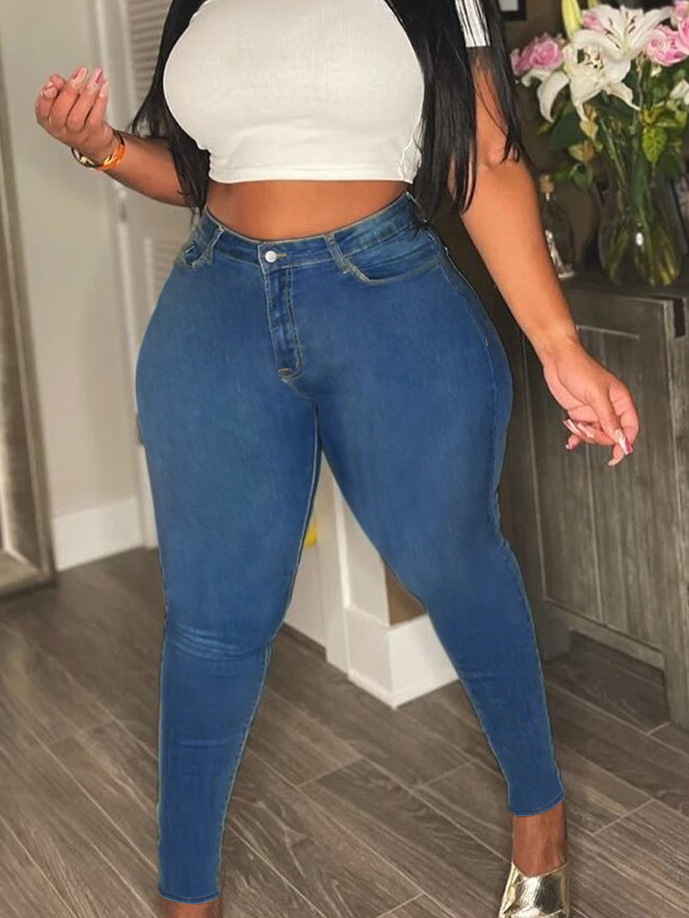 新塘tiktokTikTokPOP现货代发超大码牛仔裤女高弹拉链中腰小脚裤