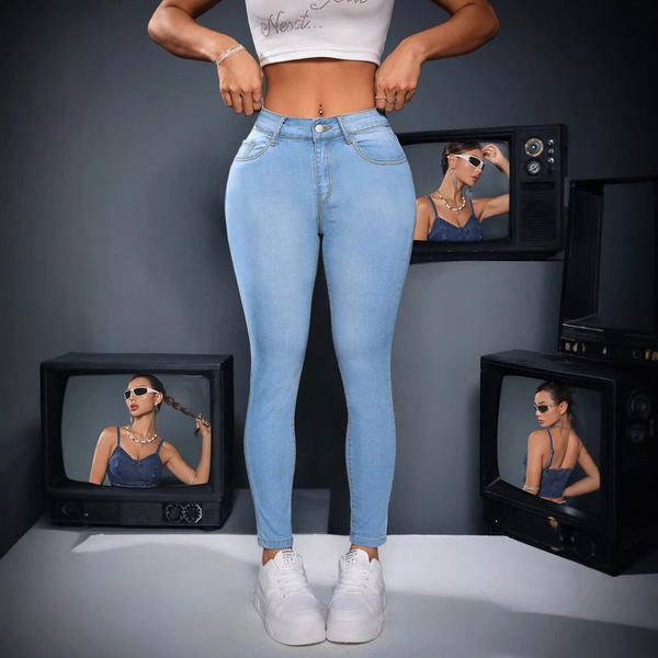 2025TEMU欧美跨境外贸新款现货弹力紧身牛仔小脚九分裤女时尚百搭