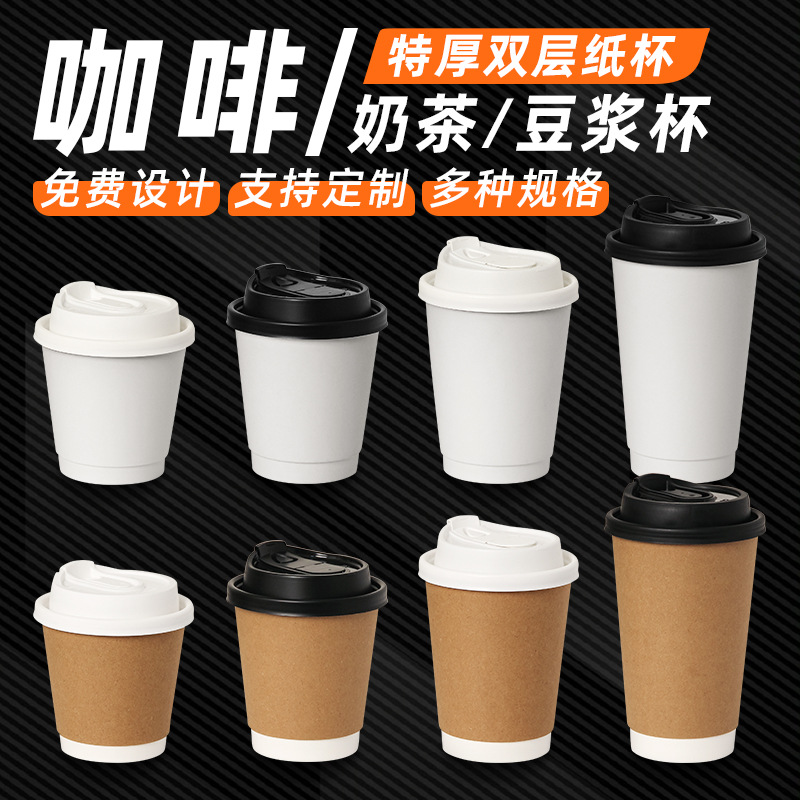 一次性咖啡杯双层奶茶冷热饮杯子商用家用外带盖打包纸杯定制logo
