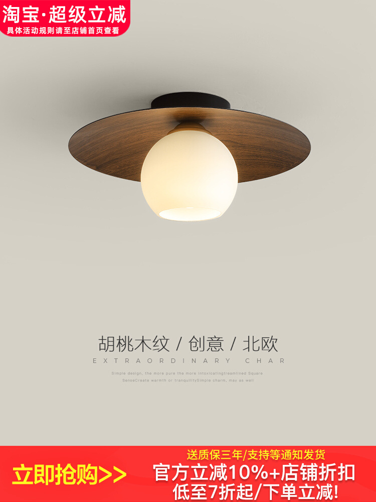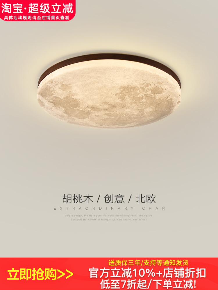 实木卧室灯简约新款北欧网红月球走廊过道灯创意极简圆形吸顶灯具