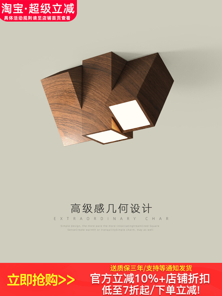 过道灯吸顶灯北欧简约入户玄关灯创意复古木纹led灯中古风阳台灯