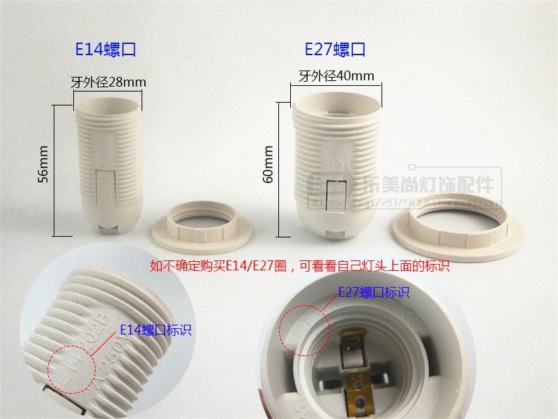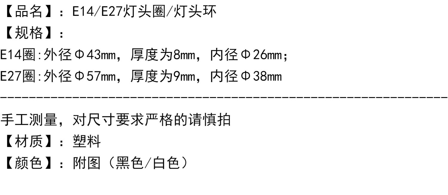 E14 e27ねじ口金口金外環白黒プラスチックリング口金リング口金リング照明器具部品diy