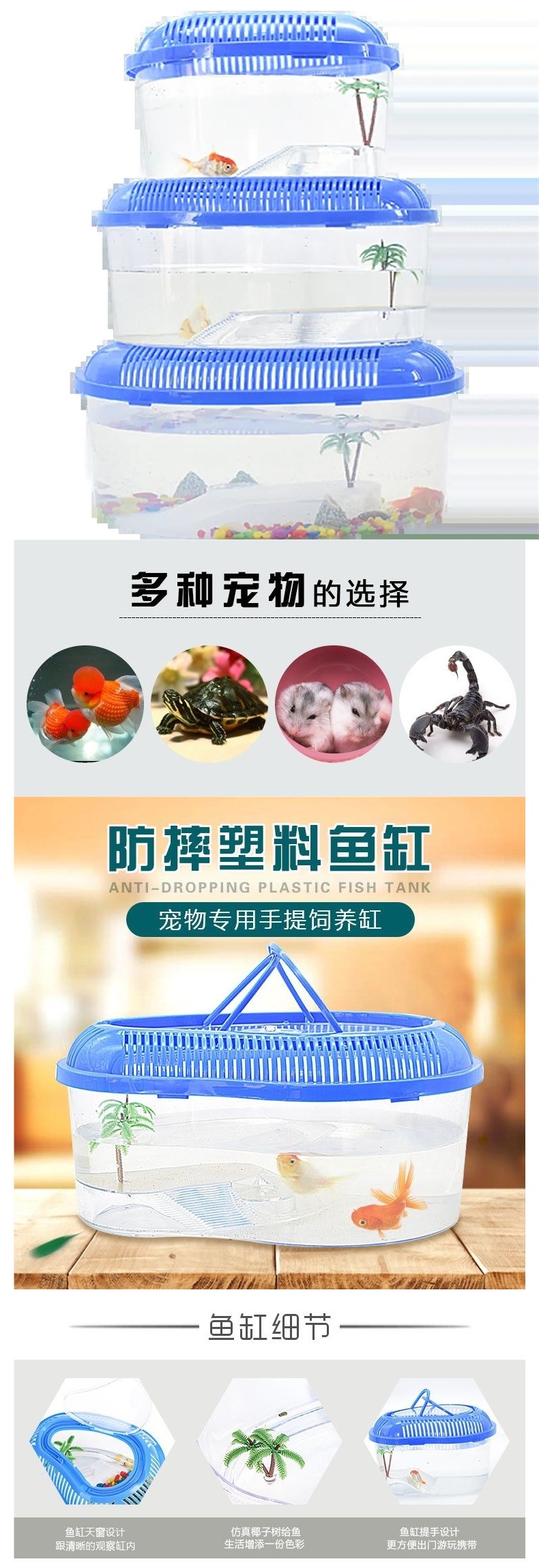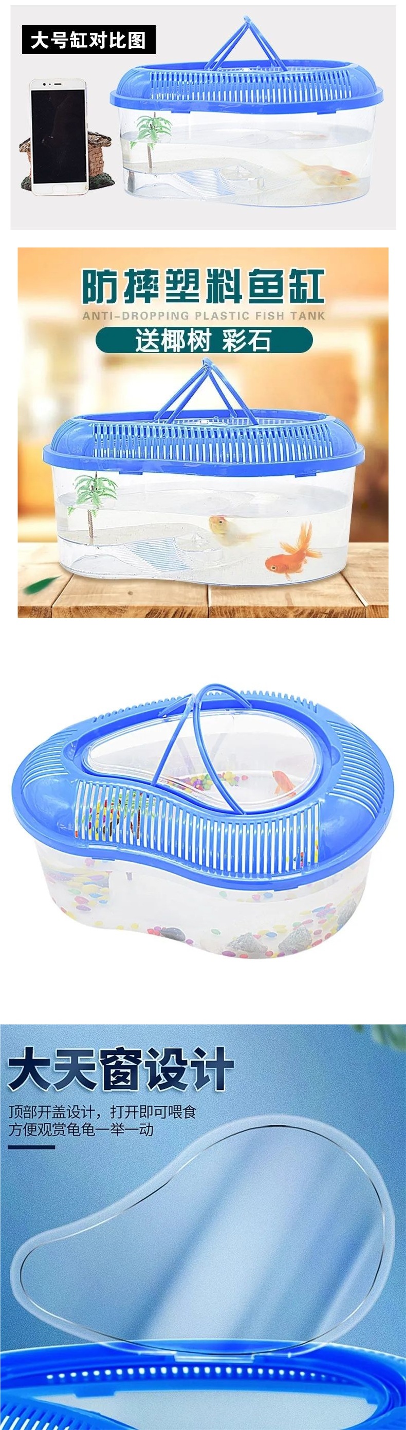 カメ水槽プラスチック水槽透明小型魚ボックス小さな金魚水槽ポータブル落下防止デスクトップ大、中、小